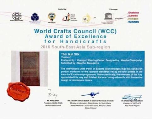 นอกจากนี้ ท่านยังได้รับการยกย่องเป็น "Asia Pacific Region Craft Master Award" และ "Craft Master of Thai Textiles" จาก World Craft Council (WCC) พร้อมทั้งดำรงตำแหน่งและมีบทบาทสำคัญ ในฐานะที่ปรึกษาและกรรมการผู้ทรงคุณวุฒิระดับประเทศ อาทิ กรรมการตัดสิน "ผ้าตรานกยูงพระราชทาน" ของกรมหม่อนไหมไทย กรรมการคัดเลือกตัดสินเส้นไหม ศูนย์หม่อนไหม จังหวัดอุบลราชธานี ที่ปรึกษาโครงการ "ผ้าไทยใส่ให้สนุก สืบสานพระราชดำริในสมเด็จพระเจ้าลูกเธอ เจ้าฟ้าสิริวัณณวรี นารีรัตนราชกัญญา" กรมการพัฒนาชุมชน กระทรวงมหาดไทย ที่ปรึกษาในการเปิดหลักสูตรทอผ้า วิทยาลัยสารพัดช่างอุบลราชธานี ซึ่งเป็นการวางรากฐานการเรียนรู้เชิงช่างฝีมือในระดับอาชีวศึกษา โดยเฉพาะอย่างยิ่งการเป็นกรรมการส่งเสริมกิจการมหาวิทยาลัยอุบลราชธานี และเป็นวิทยากรบรรยายพิเศษ รวมถึงให้คำแนะนำในการพัฒนาหลักสูตรด้านสิ่งทอและแฟชั่นแก่ คณะศิลปประยุกต์และสถาปัตยกรรมศาสตร์ มหาวิทยาลัยอุบลราชธานี อย่างต่อเนื่องยาวนาน ตั้งแต่ปีการศึกษา ๒๕๔๗ นอกจากนี้ ยังให้ความอนุเคราะห์เครื่องมือเครื่องใช้ในการจัดทำกิจกรรมของมหาวิทยาลัยอุบลราชธานี อาทิ งานแห่เทียนพรรษา งานพิธีสำคัญของจังหวัดอุบลราชธานี รวมถึงการทอผ้ากาบบัว ถวายแด่สมเด็จพระกนิษฐาธิราชเจ้า กรมสมเด็จพระเทพรัตนราชสุดาฯ สยามบรมราชกุมารี ในงานพิธีพระราชทานปริญญาบัตรของมหาวิทยาลัยอุบลราชธานี มายาวนานกว่า ๑๐ ปี