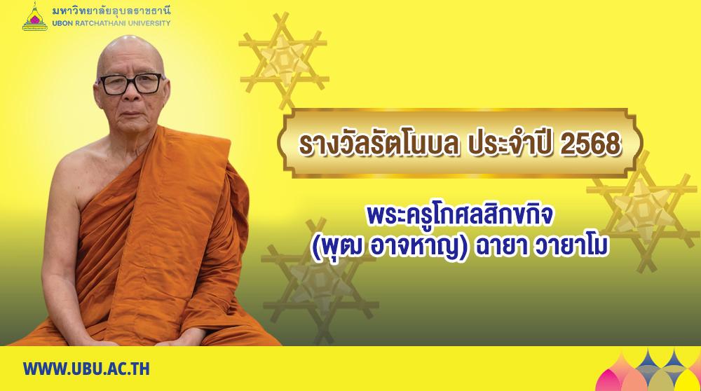 มหาวิทยาลัยอุบลราชธานี มีความยินดีประกาศเกียรติคุณเพื่อเชิดชูเกียรติ พระครูโกศลสิกขกิจ (พุฒ อาจหาญ) ฉายา วายาโม ที่ได้รับถวายรางวัลรัตโนบล คณะบริหารศาสตร์ โดย สภามหาวิทยาลัยอุบลราชธานี ได้พิจารณาอนุมัติถวายรางวัลรัตโนบล ประจำปี พ.ศ. ๒๕๖๘ แด่พระครูโกศลสิกขกิจ (พุฒ อาจหาญ) ฉายา วายาโม ที่ได้ตั้งมั่นในพระธรรมวินัย กอปรด้วย สติปัญญา ใช้หลักธรรมทางพระพุทธศาสนาในการบริหารวัดควบคู่กับการพัฒนาชุมชน จนเกิดเป็นโครงการต่าง ๆ ที่สร้างประโยชน์สุขให้แก่สังคมอย่างเป็นรูปธรรม ได้บำเพ็ญประโยชน์ต่อสาธารณชนจนเกิดการพัฒนาคุณภาพชีวิตของประชาชนในพื้นที่เป็นที่ประจักษ์ มีผลงานทางวิชาชีพที่มีคุณภาพอันเป็นที่ยอมรับของชุมชน สังคม ประเทศชาติ มีคุณงามความดีที่ได้รับการยกย่องในระดับชาติหรือนานาชาติ อุทิศตนเป็นประโยชน์ต่อสังคมหรือมหาวิทยาลัยอย่างต่อเนื่องสม่ำเสมอและมีความประพฤติปฏิบัติตนเป็นแบบอย่างที่ดีแก่บุคคลทั่วไป โดยจะเข้ารับพระราชทานถวายรางวัลรัตโนบล ประจำปี พ.ศ. ๒๕๖๘ ในวันพุธที่ ๒๔ ธันวาคม พ.ศ. ๒๕๖๘ ณ อาคารเฉลิมพระเกียรติ ๗ รอบ พระชนมพรรษา มหาวิทยาลัยอุบลราชธานี