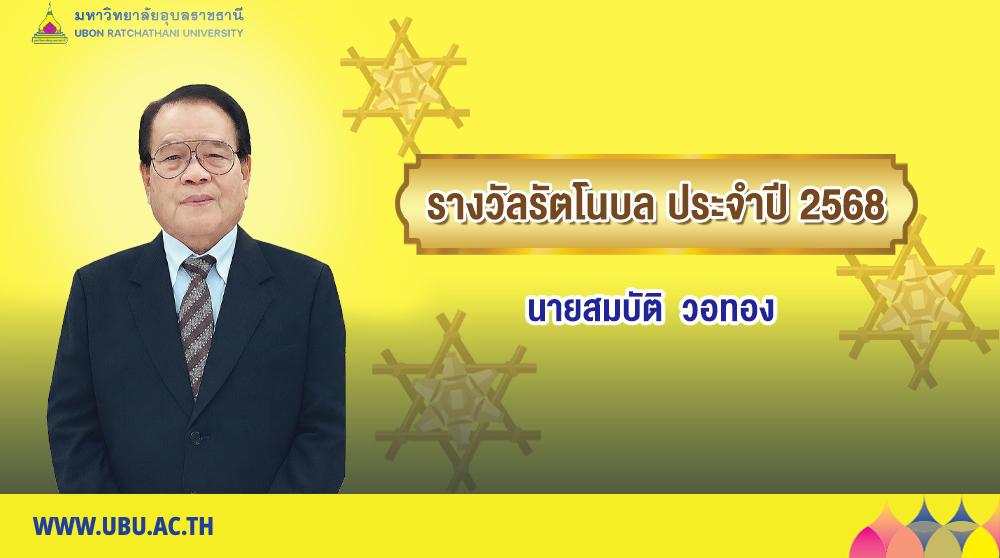 มหาวิทยาลัยอุบลราชธานี มีความยินดีประกาศเกียรติคุณเพื่อเชิดชูเกียรติ นายสมบัติ วอทอง ที่ได้รับรางวัลรัตโนบล ประเภทบุคคลทั่วไป คณะนิติศาตร์ โดย สภามหาวิทยาลัยอุบลราชธานี ได้พิจารณาอนุมัติรางวัลรัตโนบล ประเภทบุคคลทั่วไป ประจำปี ๒๕๖๘ แก่บุคคลที่มีผลงานทางวิชาชีพที่มีคุณภาพอันเป็นที่ยอมรับของชุมชน สังคม ประเทศชาติอย่างต่อเนื่องสม่ำเสมอ มีคุณงามความดีที่ได้รับการยกย่องในระดับชาติหรือนานาชาติ อุทิศต้นเป็นประโยชน์ต่อสังคมหรือมหาวิทยาลัยอย่างต่อเนื่องสม่ำเสมอและมีความประพฤติปฏิบัติเป็นแบบอย่างที่ดีแก่บุคคลทั่วไป โดยจะเข้ารับพระราชทานรางวัลรัตโนบล ประเภทบุคคลทั่วไป ประจำปี ๒๕๖๘ ในวันพุธที่ ๒๔ ธันวาคม พ.ศ. ๒๕๖๘ ณ อาคารเฉลิมพระเกียรติ ๗ รอบ พระชนมพรรษา มหาวิทยาลัยอุบลราชธานี