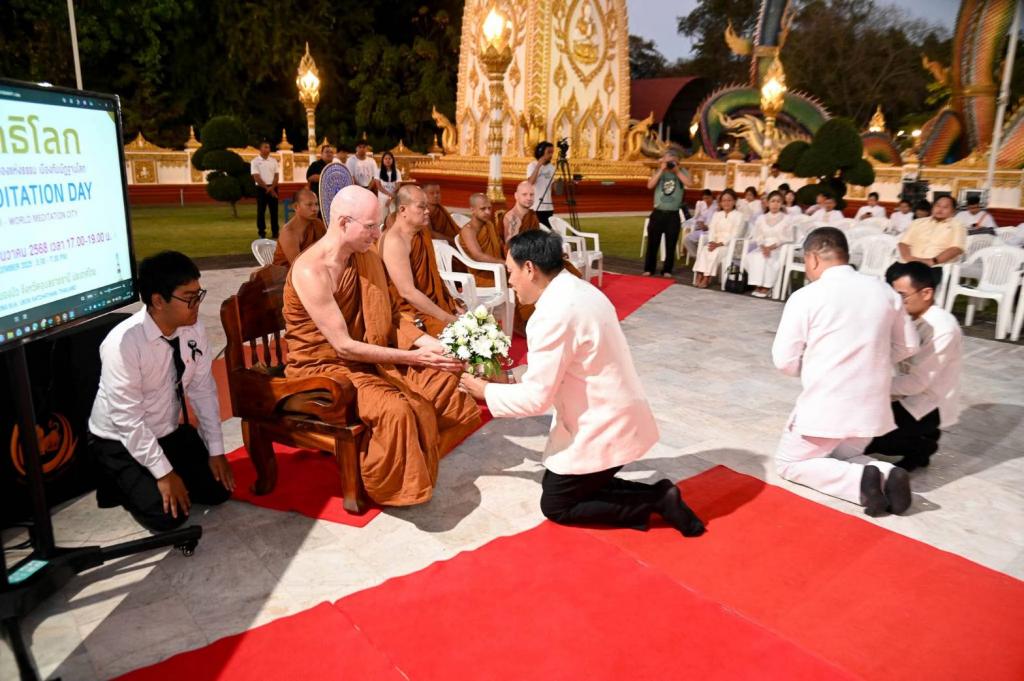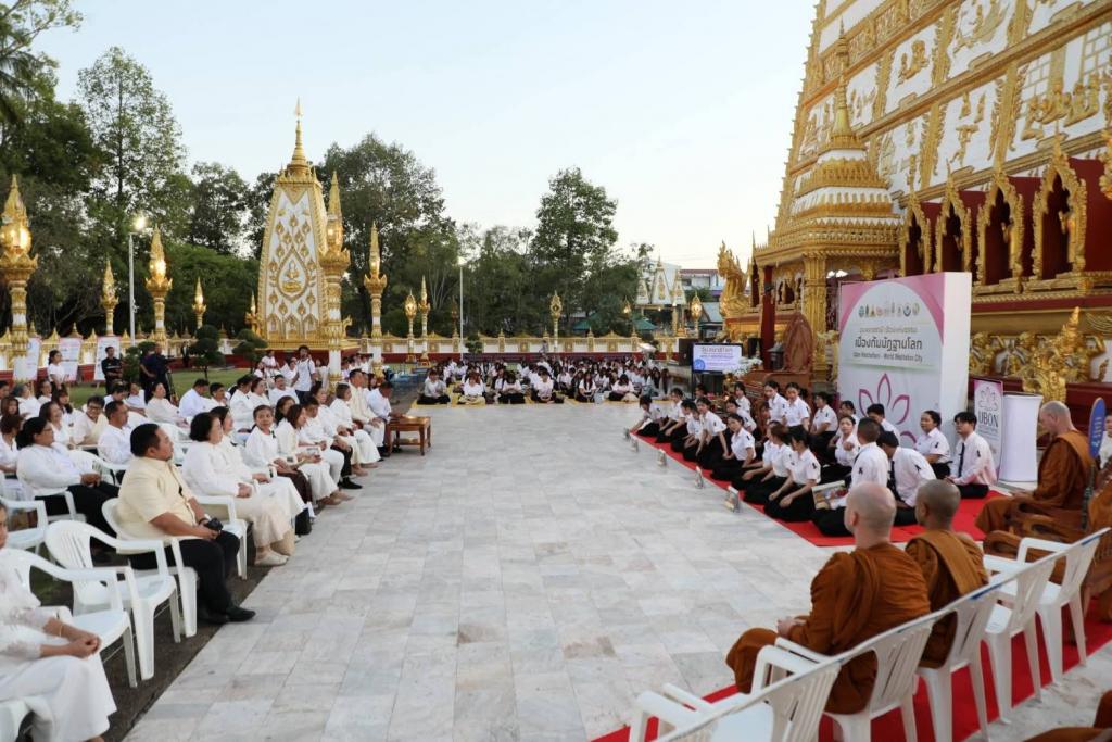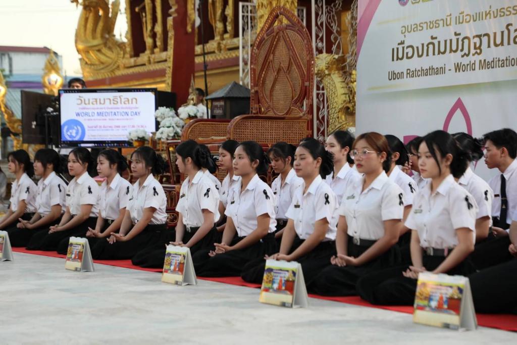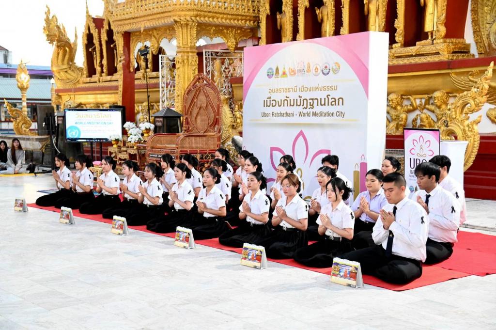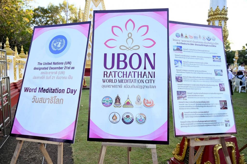 จังหวัดอุบลราชธานี ร่วมกับมหาวิทยาลัยอุบลราชธานี สำนักงานวัฒนธรรมจังหวัดอุบลราชธานี และภาคีเครือข่ายทั้งในและต่างประเทศ จัดกิจกรรม วันสมาธิโลก (World Meditation Day) ภายใต้โครงการ “อุบลราชธานี : เมืองแห่งธรรม เมืองกัมมัฏฐานโลก (World Meditation City)” เมื่อวันเสาร์ที่ 20 ธันวาคม 2568 เวลา 17.00–19.00 น. ณ วัดพระธาตุหนองบัว จังหวัดอุบลราชธานี โดยมีประชาชน นักศึกษา และผู้สนใจกว่า 400 คน เข้าร่วมกิจกรรม