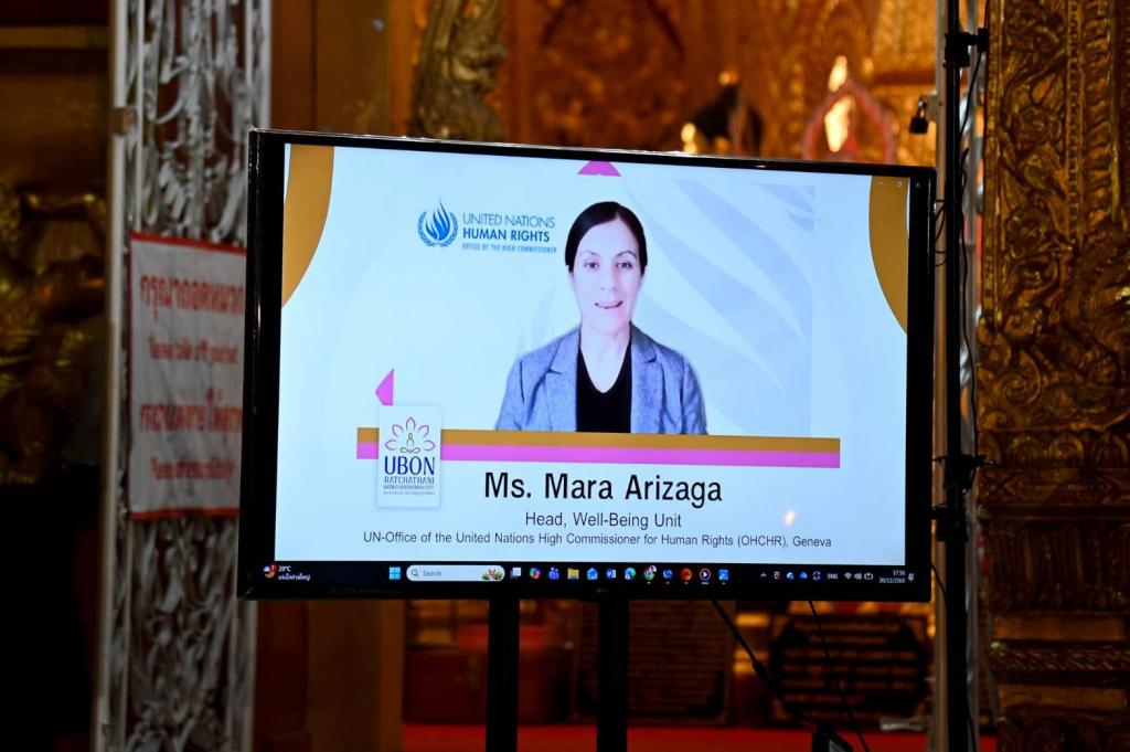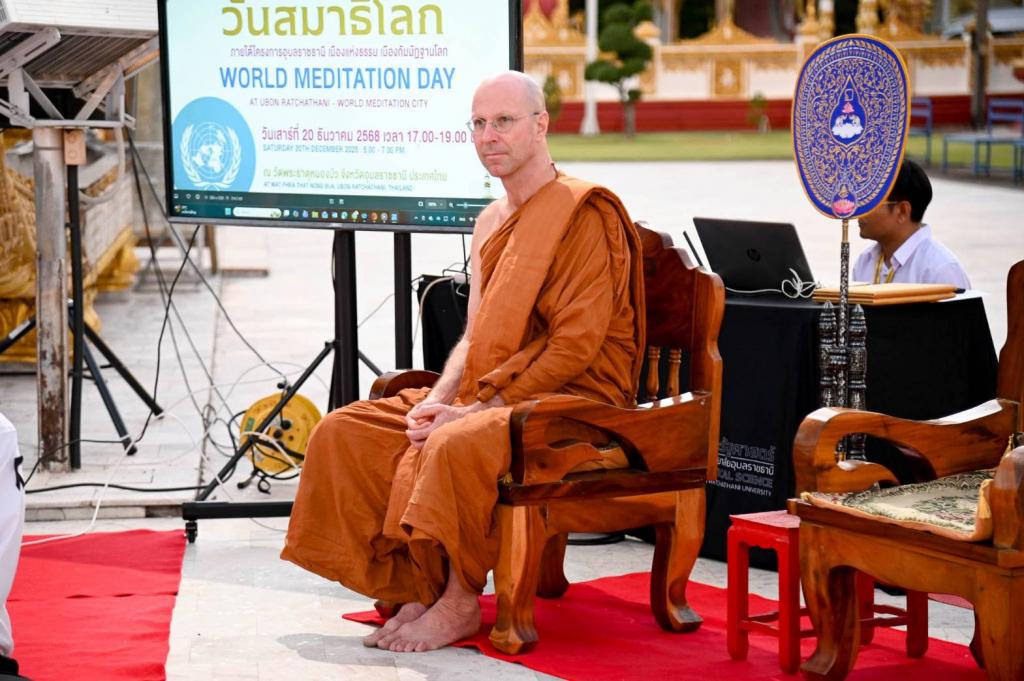 กิจกรรมดังกล่าวจัดขึ้นเพื่อสนองเจตนารมณ์ขององค์การสหประชาชาติ ซึ่งได้ประกาศให้วันที่ 21 ธันวาคมของทุกปีเป็น “วันสมาธิโลก” เพื่อส่งเสริมการฝึกสมาธิ สติ และการเจริญภาวนา ในฐานะเครื่องมือสำคัญในการเสริมสร้างสันติภาพ ความเข้าใจอันดี และการยกระดับคุณภาพชีวิตของมนุษยชาติ รับเกียรติจาก นายสมมาฏฐ์ โพธิ รองผู้ว่าราชการจังหวัดอุบลราชธานี เป็นประธานเปิดงาน นายสฤษดิ์ วิฑูรย์ ประธานกรรมการส่งเสริมกิจการมหาวิทยาลัยอุบลราชธานี ร่วมเป็นเกียรติ Ms. Mara Arizagaหัวหน้าหน่วยงานด้านสุขภาวะ สำนักงานข้าหลวงใหญ่สิทธิมนุษยชนแห่งสหประชาชาติ (OHCHR) สำนักงานเจนีวา รวมถึง Dr. Prashant Sharma ประธาน Dharma Alliance ร่วมกล่าวแสดงความยินดี ซึ่งสะท้อนพลังความร่วมมือด้านสันติภาพและสุขภาวะในระดับนานาชาติ