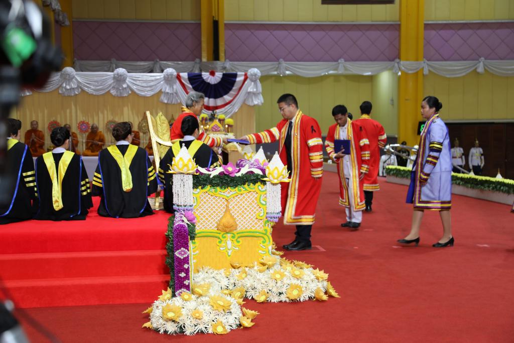 โอกาสนี้ พระราชทานพระราโชวาท ความสำคัญตอนหนึ่งว่า... ความสำเร็จในการศึกษาที่ท่านได้รับในวันนี้ เป็นผลจากความเพียรพยายายามและความมุ่งมั่นของท่าน ที่ได้ตั้งใจศึกษาเล่าเรียนและฝึกฝนตนเอง จนสำเร็จตามเป้าหมาย. เชื่อว่าทุกท่านจะภาคภูมิใจ และตั้งความปรารถนาไว้ว่าจะนำความรู้ความสามารถที่มีอยู่ ไปใช้ให้บังเกิดประโยชน์แท้จริง ทั้งแก่ตนเอง ครอบครัว สังคม และประเทศชาติ. แต่ในโลกปัจจุบันซึ่งเปลี่ยนแปลงไปอย่างรวดเร็วนั้น ความรู้และเทคโนโลยีมีการพัฒนาอย่างต่อเนื่อง ทำให้ยิ่งเป็นที่ประจักษ์ชัด ว่าการศึกษาของคนเราไม่ควรสิ้นสุดเพียงในสถาบันการศึกษา หากแต่เป็นภารกิจตลอดชีวิตของทุกคน. บัณฑิตจึงควรเพียรพยายามและมุ่งมั่นให้ตลอดต่อเนื่อง ที่จะศึกษาหาความรู้เพิ่มเติมอย่างสม่ำเสมอ พร้อมทั้งหมั่นฝึกฝนอบรมจิตใจให้ยึดมั่นในคุณธรรมความดีมีความซื่อสัตย์สุจริต ความกตัญญูตระหนักรู้ในความดีของผู้อื่น และเมตตาปรารถนาดีต่อผู้อื่นต่อชาติบ้านเมือง. ถ้าทำได้ แต่ละคนก็จะเป็นกำลังสำคัญในการสร้างสรรค์สังคม และประสบความสำเร็จที่สูงขึ้น คือความสำเร็จในการดำเนินชีวิตและประกอบกิจการงาน ให้บรรลุถึงความดีความเจริญ.