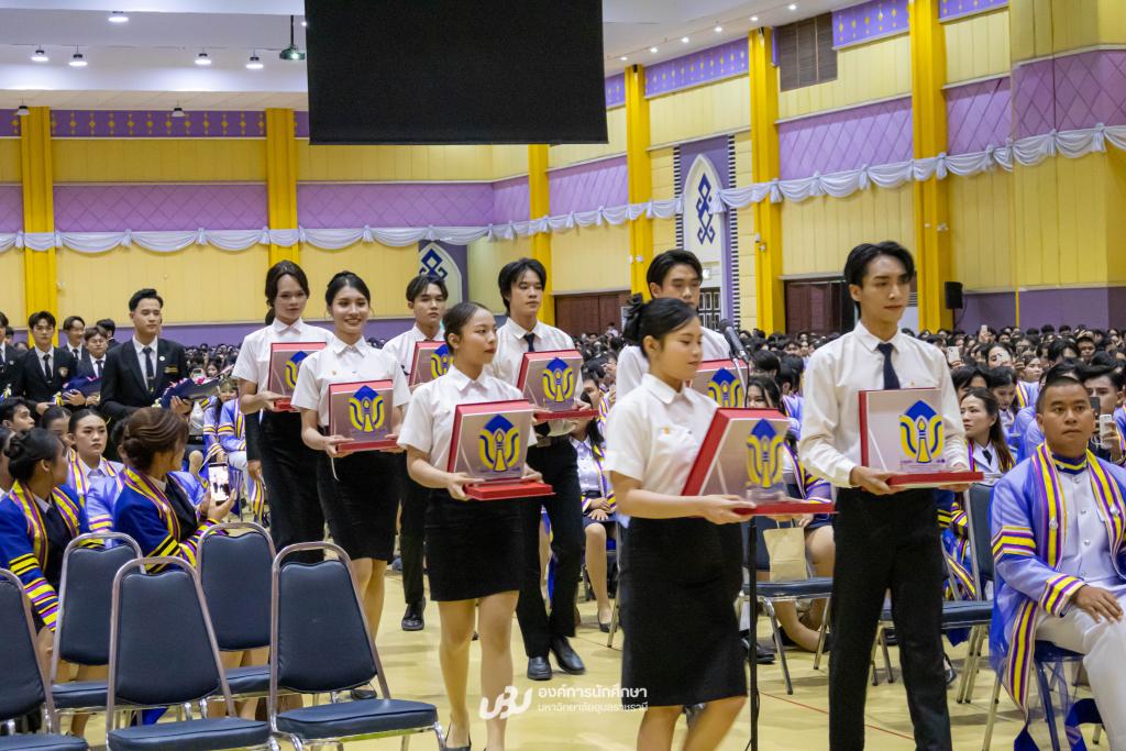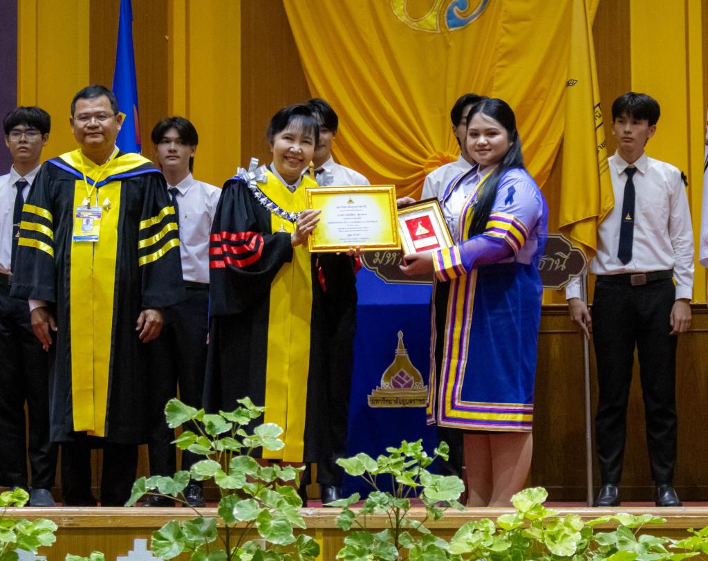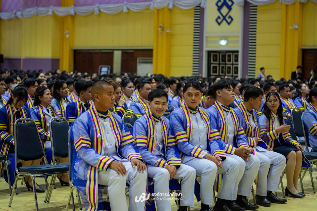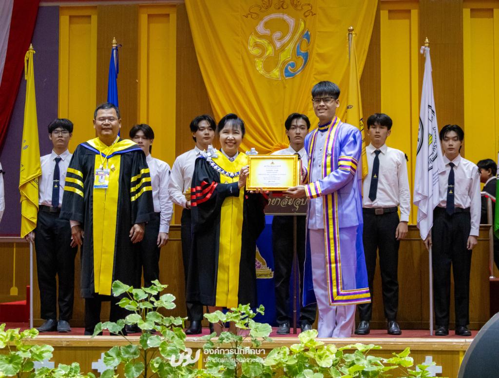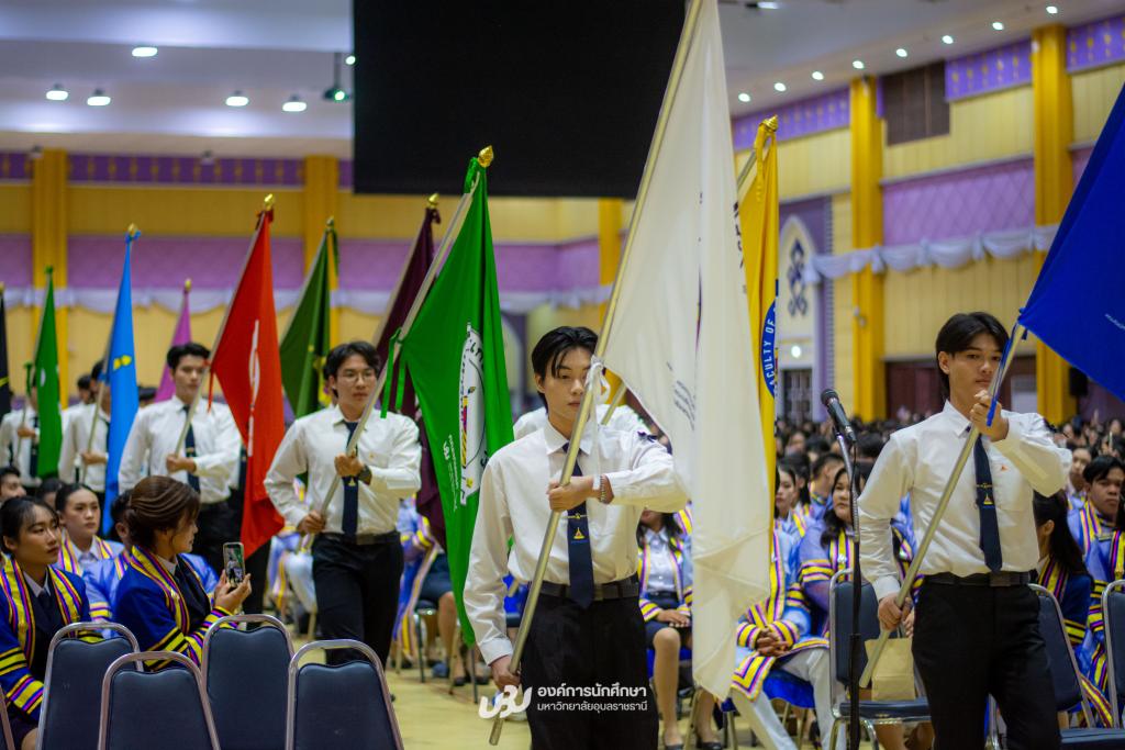 มหาวิทยาลัยอุบลราชธานี โดยองค์การนักศึกษา สภานักศึกษา สโมสรนักศึกษาคณะ และสำนักงานพัฒนานักศึกษา จัดโครงการ “เชิดชูเกียรติบัณฑิตผู้นำนักศึกษา ประจำปี 2567 รุ่นที่ 34”เพื่อร่วมแสดงความยินดีและยกย่องเกียรติคุณบัณฑิตที่มีผลการเรียนดีเยี่ยมและบัณฑิตนักกิจกรรมผู้ทำประโยชน์แก่ส่วนรวม รับเกียรติจาก รองศาสตราจารย์ ดร.ชุตินันท์ ประสิทธิภูริปรีชา อธิการบดี เป็นประธานในพิธีมอบโล่รางวัลและเกียรติบัตร โอกาสนี้ ผู้ช่วยศาสตราจารย์ ดร.ปรีชา บุญจูง รองอธิการบดีฝ่ายพัฒนานักศึกษาและศิษย์เก่าสัมพันธ์ พร้อมด้วยผู้นำนักศึกษา นายกองค์การนักศึกษา ประธานสภานักศึกษา และนายกสโมสรนักศึกษาคณะ ร่วมมอบช่อดอกไม้แสดงความยินดี ซึ่งจัดกิจกรรมหลังเสร็จสิ้นการฝึกซ้อมใหญ่พิธีพระราชทานปริญญาบัตรณ อาคารเฉลิมพระเกียรติ 7 รอบ พระชนมพรรษา เมื่อวันที่ 22 ธันวาคม 2568 ที่ผ่านมา