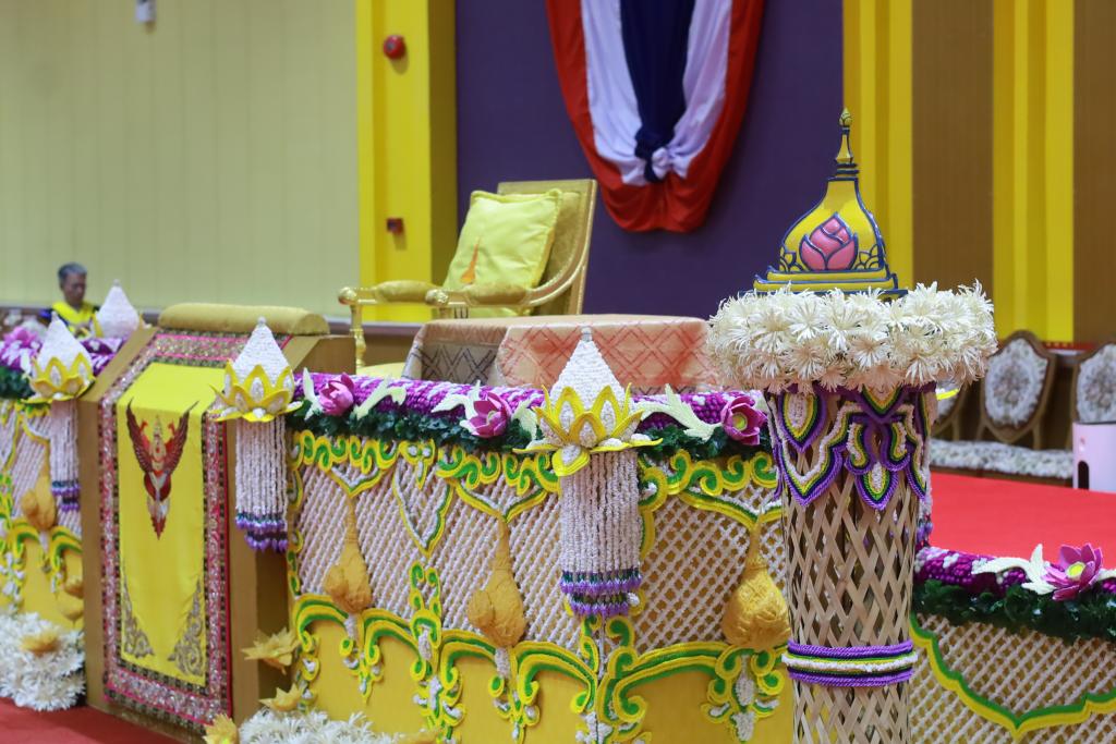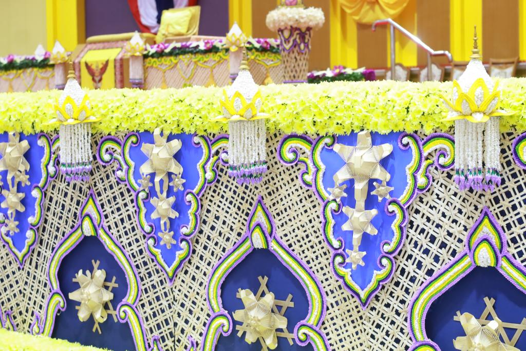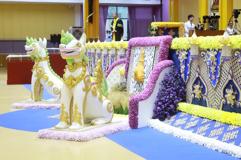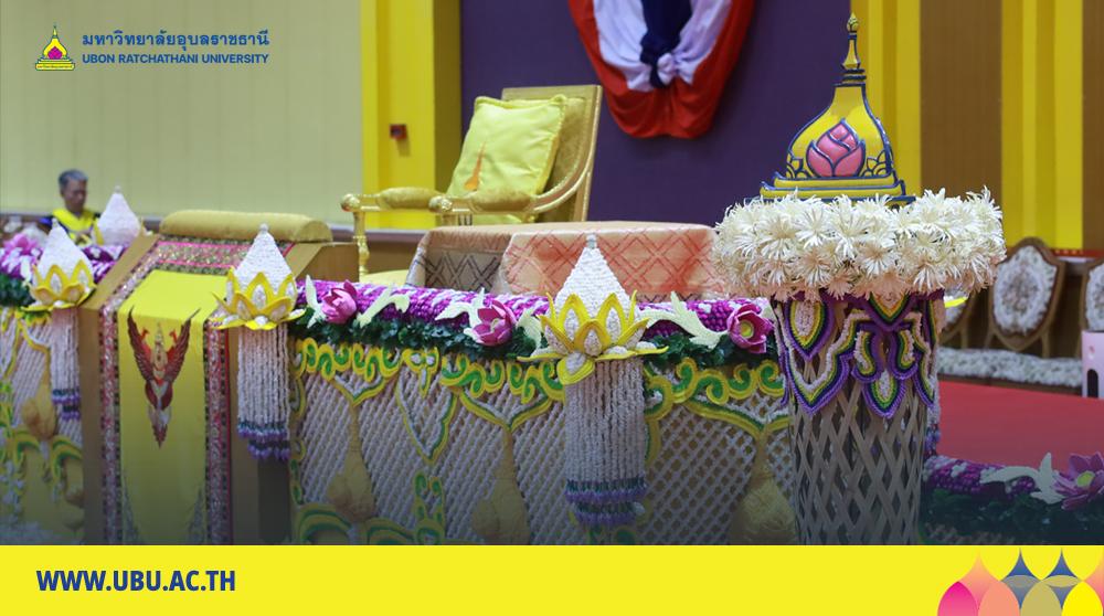 โอกาสนี้ มหาวิทยาลัยอุบลราชธานี ได้จัดตกแต่ง พระแท่นที่ประทับและพื้นที่เวทีพระราชทานปริญญาบัตร ภายในอาคารเฉลิมพระเกียรติ 7 รอบ พระชนมพรรษา อย่างงดงาม สมพระเกียรติ และเปี่ยมด้วยความหมายเชิงสัญลักษณ์ โดยออกแบบสร้างสรรค์ภายใต้แนวคิดการสืบสานทุนทางวัฒนธรรมและภูมิปัญญางานช่างพื้นถิ่นอีสานลุ่มน้ำโขง ถ่ายทอดผ่านรูปแบบศิลปะร่วมสมัย ออกแบบโดย คณะศิลปประยุกต์และสถาปัตยกรรมศาสตร์ มหาวิทยาลัยอุบลราชธานี