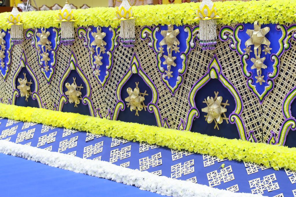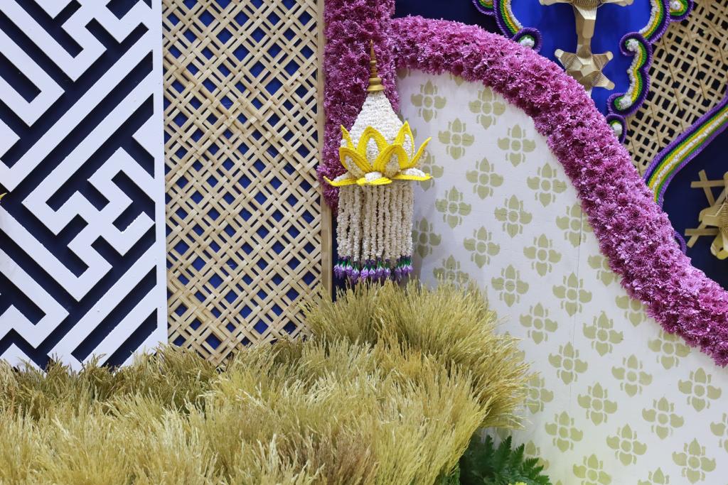 แนวคิดทั้งหมดได้ถูกหลอมรวมถ่ายทอดผ่านองค์ประกอบการตกแต่งทุกส่วน ผสานเทคนิคและวัสดุภูมิปัญญาท้องถิ่นอุบลราชธานีและภาคอีสาน อาทิ งานเทียนพรรษาประเภทติดพิมพ์ งานจักสาน มาลัยข้าวตอก การตกแต่งด้วยดอกบัวซึ่งเป็นดอกไม้มงคลทางพุทธศาสนาและเป็นดอกไม้ประจำจังหวัดอุบลราชธานี รวมถึงดอกโสน ดอกไม้แห้งเครื่องบูชาในงานบุญผะเวส (เทศน์มหาชาติ) เป็นการผสมผสานคติความเชื่อในสังคมสมัยบุพกาล หลอมรวมเป็นหนึ่งเดียวกันของสังคมพหุวัฒนธรรม ที่แลกเปลี่ยนเรียนรู้และผสมผสานกันของผู้คนสองฝั่งโขง เฉกเช่นวิถีแห่งการเรียนรู้ที่ต้องบูรณาการกับสรรพศาสตร์ต่างๆ อย่างสร้างสรรค์