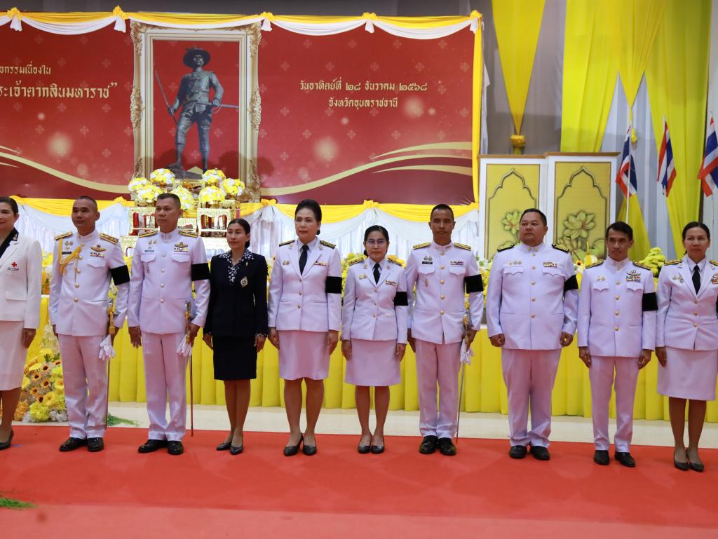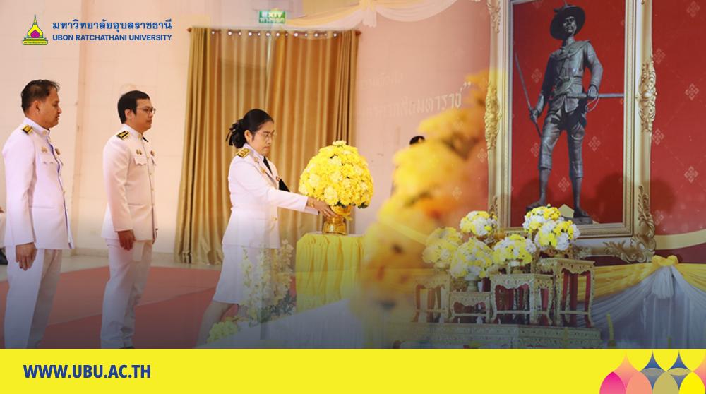 มหาวิทยาลัยอุบลราชธานี โดย รองศาสตราจารย์ ดร.ชุตินันท์ ประสิทธิ์ภูริปรีชา อธิการบดี มอบหมายให้ นางสาวมัณฑนา เจือบุญ ผู้อำนวยการกองกลาง เข้าร่วมพิธีถวายราชสักการะและวางพานพุ่มดอกไม้สด เนื่องในวันสมเด็จพระเจ้าตากสินมหาราช เพื่อเทิดพระเกียรติและน้อมรำลึกในพระมหากรุณาธิคุณของพระองค์ ผู้ทรงกอบกู้เอกราชให้แก่ชาติไทย โดยมี ว่าที่ร้อยตรีกรกฎ ประเสริฐวงษ์ รองผู้ว่าราชการจังหวัดอุบลราชธานี เป็นประธานนำประกอบพิธี ซึ่งมีหัวหน้าส่วนราชการ หน่วยงานรัฐวิสาหกิจ และองค์กรปกครองส่วนท้องถิ่น เข้าร่วมพิธีอย่างพร้อมเพรียง ณ หอประชุมจังหวัดอุบลราชธานี ศาลากลางจังหวัดอุบลราชธานี วันที่ 28 ธันวาคม 2568 ที่ผ่านมา