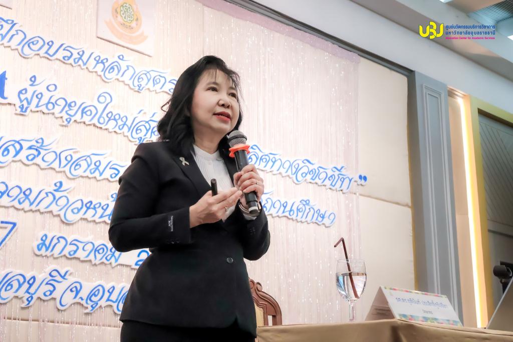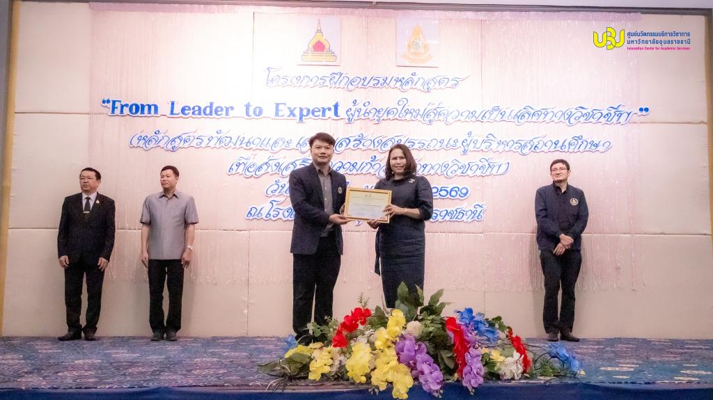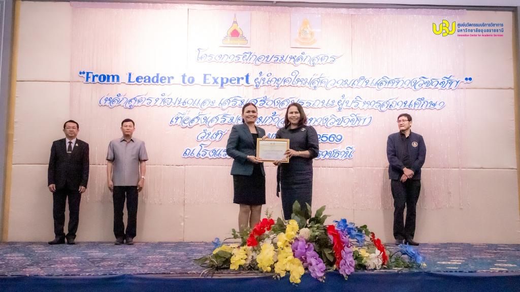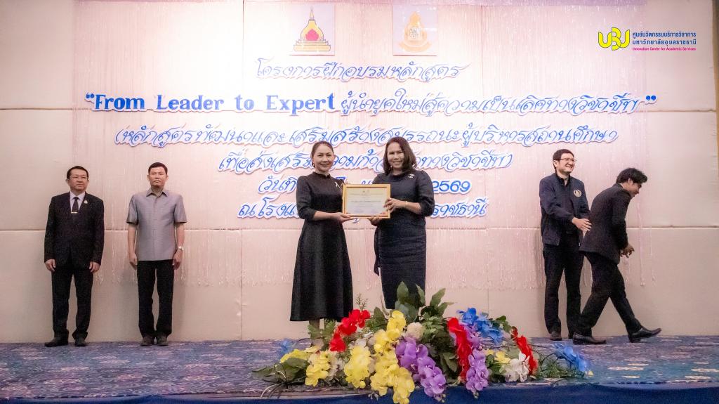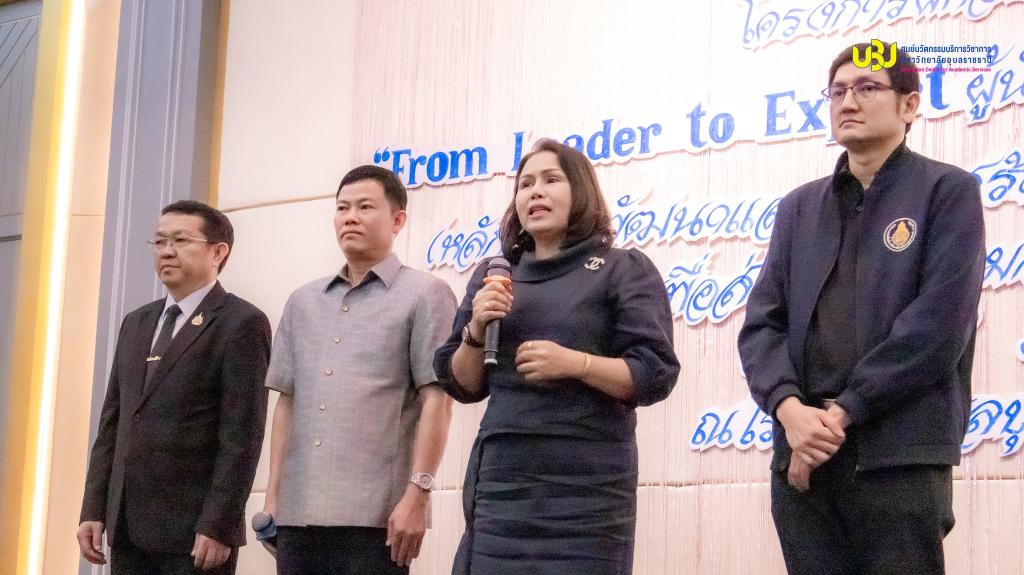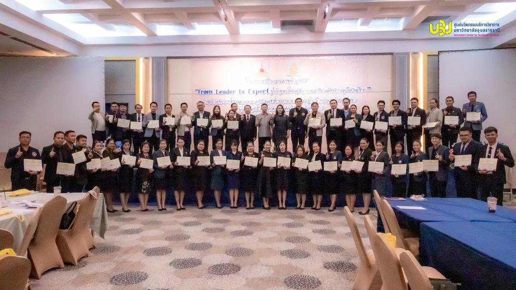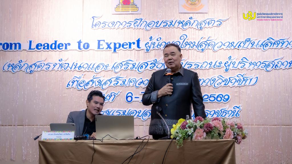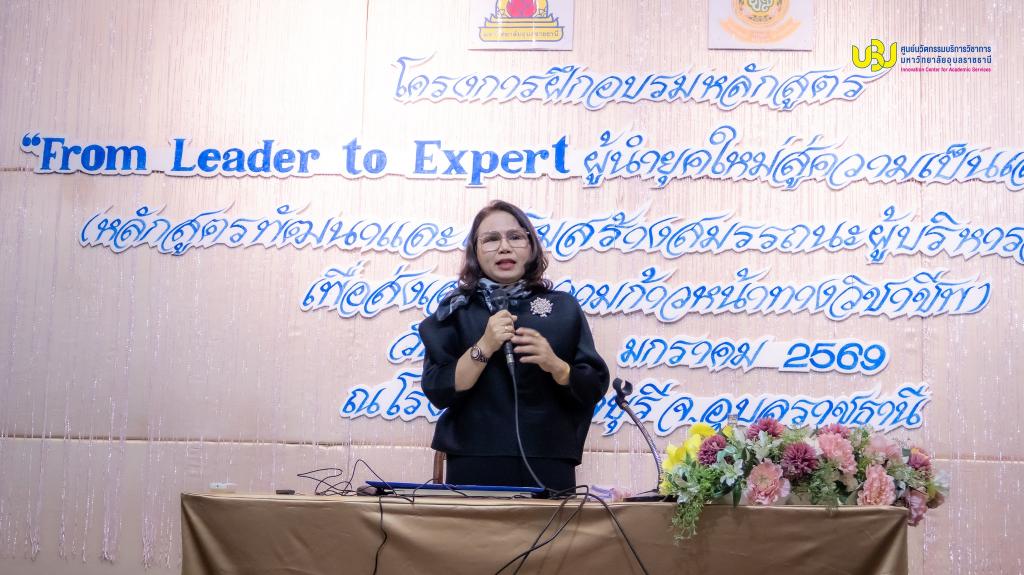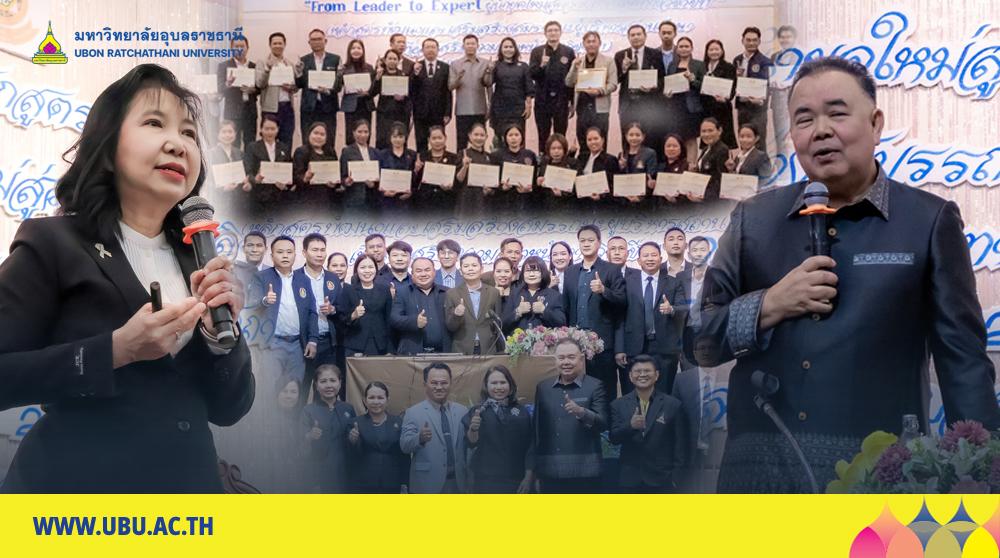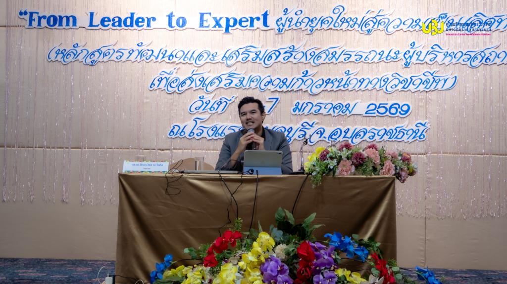 มหาวิทยาลัยอุบลราชธานี โดยศูนย์นวัตกรรมบริการวิชาการ ร่วมกับ สำนักงานเขตพื้นที่การศึกษามัธยมศึกษาอุบลราชธานี อำนาจเจริญ พัฒนาหลักสูตร From Leader to Expert ผู้นำยุคใหม่สู่ความเป็นเลิศทางวิชาชีพ” รุ่นที่ 1 เตรียมความพร้อมสู่ตำแหน่งวิทยฐานะเชี่ยวชาญ โดยมีนางจารุวรรณ บุญโต ผู้อำนวยการสำนักงานเขตพื้นที่การศึกษามัธยมศึกษาอุบลราชธานี อำนาจเจริญ เป็นประธาน ผู้ช่วยศาสตราจารย์ ดร.ปิยณัฐ สร้อยคำ ผู้ช่วยอธิการบดีฝ่ายการตลาด มหาวิทยาลัยอุบลราชธานี กล่าวต้อนรับ ซึ่งมีผู้บริหารการศึกษา ผู้อำนวยการ และรองผู้อำนวยการสถานศึกษาในสังกัด เข้ารวมกว่า 100 ท่าน ณ โรงแรมอุบลบุรี โฮเต็ล แอนด์ รีสอร์ท เมื่อระหว่างวันที่ 6-7 มกราคม 2569 ที่ผ่านมา
