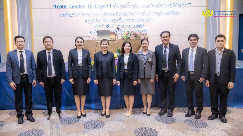 หลักสูตร From Leader to Expertผู้นำยุคใหม่สู่ความเป็นเลิศทางวิชาชีพ รุ่นที่ 1 มุ่งเน้นการเสริมสร้างศักยภาพผู้บริหารด้วยจิตวิทยาการบริหารและการสื่อสารเชิงผู้นำที่ทรงพลัง เพื่อยกระดับประสิทธิภาพการบริหารบุคคลและองค์กรอย่างยั่งยืน พร้อมเจาะลึกการวางแผนเส้นทางวิชาชีพมุ่งสู่ตำแหน่ง “วิทยฐานะเชี่ยวชาญ” ตามหลักเกณฑ์และวิธีการ (ว.10) อย่างเป็นระบบ โดยได้รับเกียรติจากคณะวิทยากรผู้ทรงคุณวุฒิ ได้แก่ รองศาสตราจารย์ ดร.ชุตินันท์ ประสิทธิ์ภูริปรีชา อธิการบดี บรรยายในหัวข้อจิตวิทยาการบริหารและทักษะผู้นำยุคใหม่ ร่วมด้วย รองศาสตราจารย์ ดร.จิณณวัตร ปะโคทัง นายกสมาคมพัฒนาวิชาชีพบริหารสถานศึกษาแห่งประเทศไทย (สพบท.), นายรักพงษ์ บุญศิริ และ ดร.กอบชัย โพธินาแค ผู้อำนวยการเชี่ยวชาญ ที่มาร่วมถ่ายทอดกลยุทธ์ “7 ก้าวบนเส้นทางสู่ความสำเร็จ” พร้อมการเสวนาแลกเปลี่ยนเรียนรู้เพื่อสร้างแรงบันดาลใจโดย ผู้ช่วยศาสตราจารย์ ดร.ปิยณัฐ สร้อยคำ ผู้ช่วยอธิการบดีฝ่ายการตลาด และทีมคณาจารย์ผู้บริหารจากคณะศึกษาศาสตร์ นำโดย ผู้ช่วยศาสตราจารย์ ดร.สุวิมล โพธิ์กลิ่น เพื่อเตรียมความพร้อมให้แก่ผู้เข้ารับการอบรมสู่ความสำเร็จในวิชาชีพอย่างมืออาชีพ