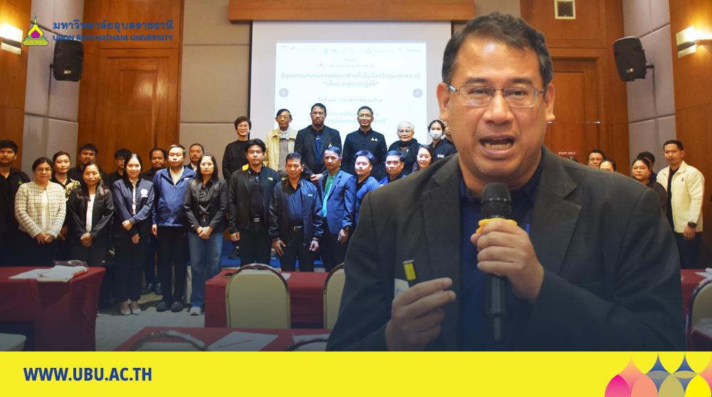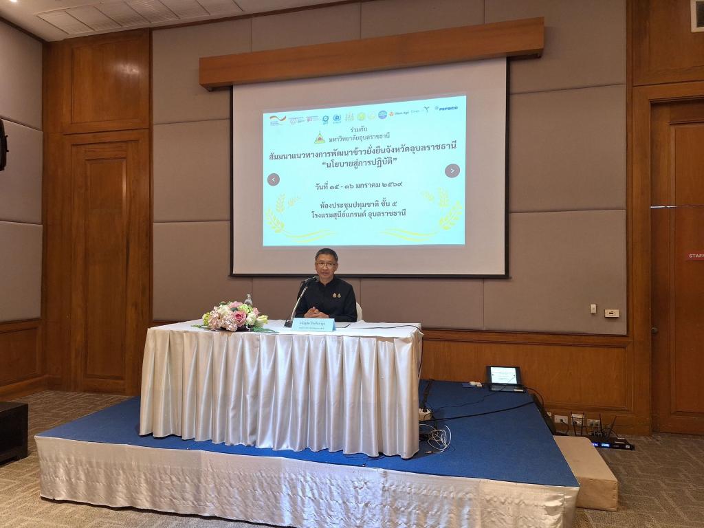 มหาวิทยาลัยอุบลราชธานี โดย สำนักงานส่งเสริมบริหารงานวิจัย บริการวิชาการและทำนุบำรุงศิลปวัฒนธรรม จัดสัมมนาเพื่อขับเคลื่อนการพัฒนาข้าวอย่างยั่งยืนของจังหวัดอุบลราชธานี ระหว่างวันที่ 15–16 มกราคม 2569 ณ ห้องประชุมปทุมชาติ ชั้น 5 โรงแรมสุนีย์แกรนด์ จังหวัดอุบลราชธานี โดยมี ศาสตราจารย์ทวนทอง จุฑาเกตุ รองอธิการบดีฝ่ายวิจัยและนวัตกรรม กล่าวรายงานวัตถุประสงค์การจัดงาน และได้รับเกียรติจาก นายภูษิต น้อยโสภากุล รองผู้ว่าราชการจังหวัดอุบลราชธานี เป็นประธานในพิธีเปิด