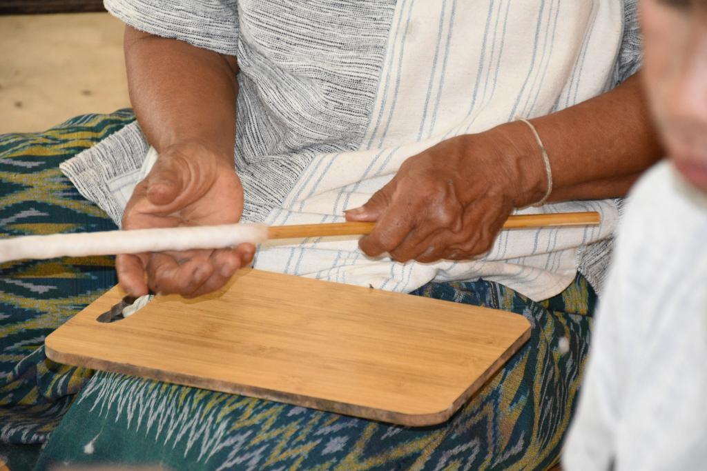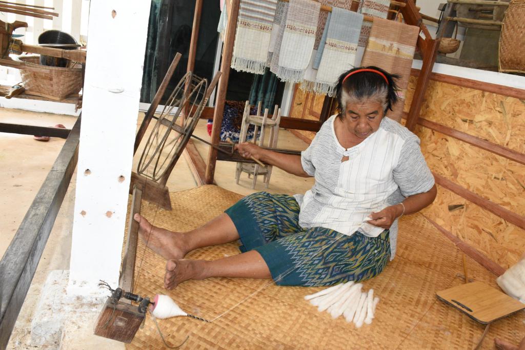 แม่สนิท สินทิพย์ ผู้ประกอบการทางวัฒนธรรมโครงการวิจัยการสืบสานและต่อยอดทุนทางวัฒนธรรมโขงเจียมเพื่อพัฒนาเศรษฐกิจชุมชนและประธานกลุ่มทอผ้าบ้านกุ่มเล่าถึงความเป็นมา "ผ้าฝ้ายลายผาแต้ม"ผลิตภัณฑ์ของกลุ่มทอผ้าบ้านกุ่มต.ห้วยไผ่อ.โขงเจียมจ.อุบลราชธานีเป็นชุมชนที่รวมตัวกันอย่างเป็นทางการตั้งแต่ปีพ.ศ. 2541 และพัฒนาเป็นวิสาหกิจชุมชนที่มีศักยภาพในการผลิตสิ่งทอจากฝ้ายพื้นบ้านโดยใช้กระบวนการผลิตที่เป็นมิตรต่อสิ่งแวดล้อมตั้งแต่การปลูกฝ้ายปลอดสารเคมีการปั่นเส้นด้ายด้วยมือไปจนถึงการย้อมสีธรรมชาติจากเปลือกไม้พื้นถิ่น