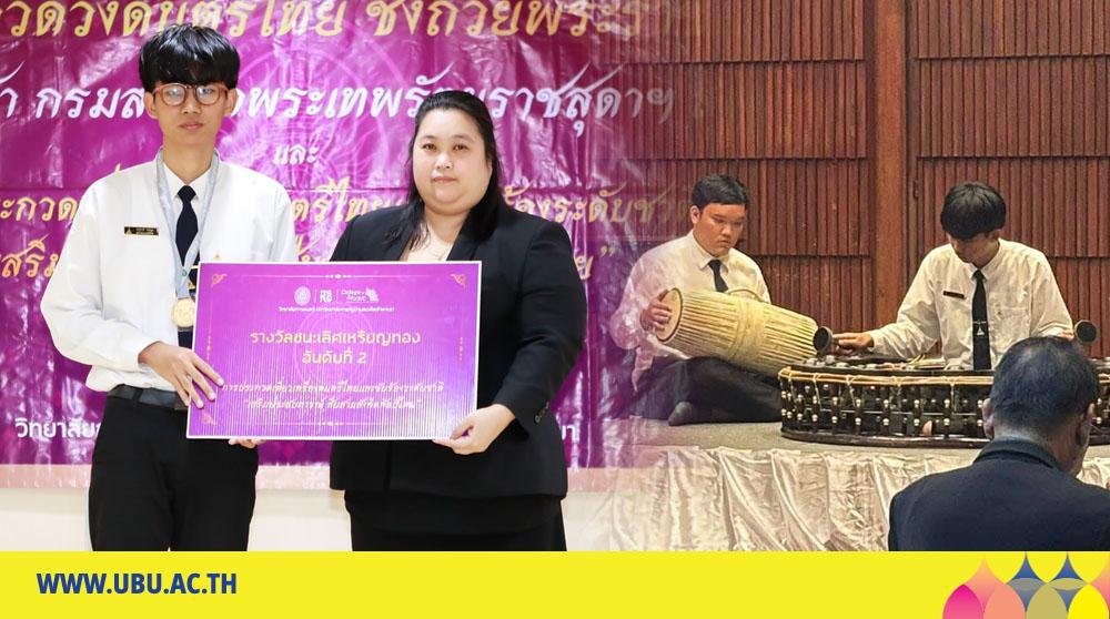 มหาวิทยาลัยอุบลราชธานี โดยนักศึกษาวิชาเอกดนตรีศึกษาคณะศึกษาศาสตร์คว้า 2รางวัล รางวัลชนะเลิศ อันดับ 2 เหรียญทอง การเดี่ยวฆ้องวงใหญ่ และรางวัลเหรียญทอง อันดับ 6 การเดี่ยวระนาดทุ้ม ระดับอุดมศึกษา ในการประกวดเดี่ยวเครื่องดนตรีไทยและขับร้องบระดับชาติ "เสริมประสบการณ์ สืบสานสังคีตศิลป์ไทย" และการประกวดวงดนตรีไทยชิงถ้วยพระราชทานสมเด็จพระกนิษฐาธิราชเจ้า กรมสมเด็จพระเทพรัตนราชสุดาฯ สยามบรมราชกุมารี (รอบชิงชนะเลิศ) โครงการการสร้างมาตรฐานทางวัฒนธรรมดนตรีไทยเพื่อการเรียนรู้และเผยแพร่แก่เยาวชนในสถานศึกษาด้วยสื่อนวัตกรรม งานวันพิราลัยสมเด็จเจ้าพระยาบรมมหาศรีสุริยวงศ์ (ช่วง บุนนาค) ประจำปี 2569 ณ วิทยาลัยการดนตรี มหาวิทยาลัยราชภัฏบ้านสมเด็จเจ้าพระยา ระหว่างวันที่ 15 - 17 มกราคม 2569 ที่ผ่านมา