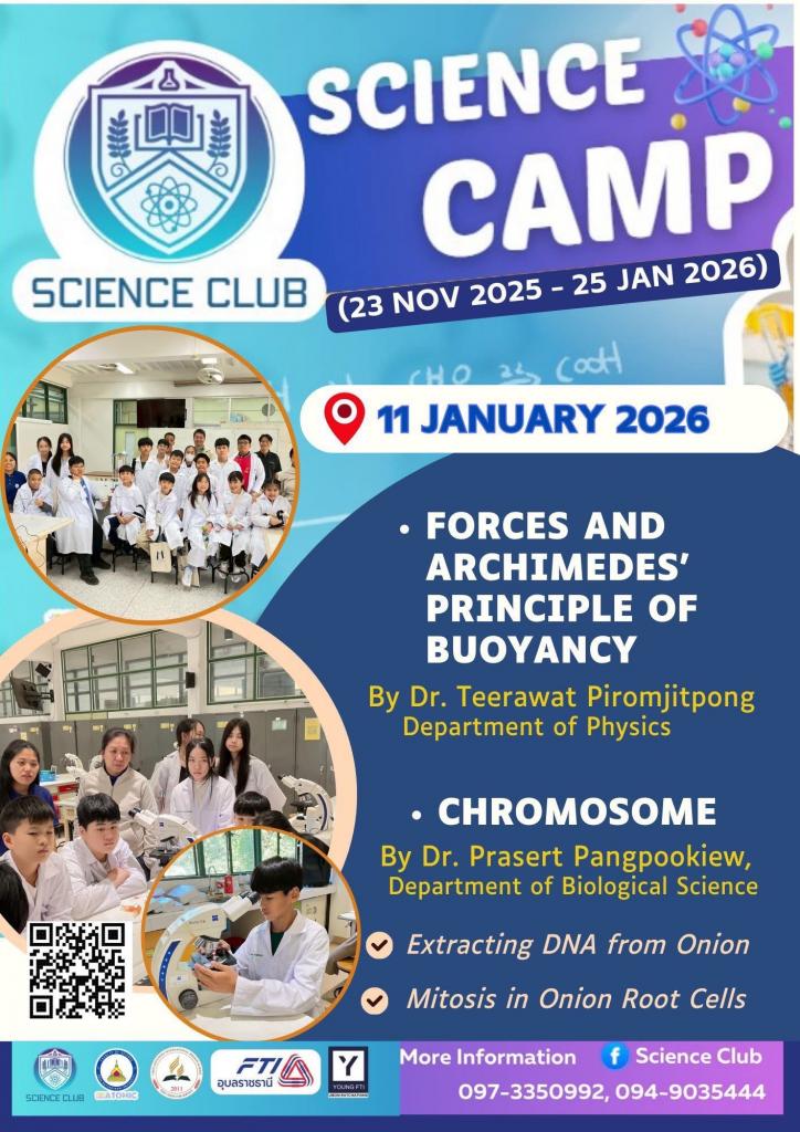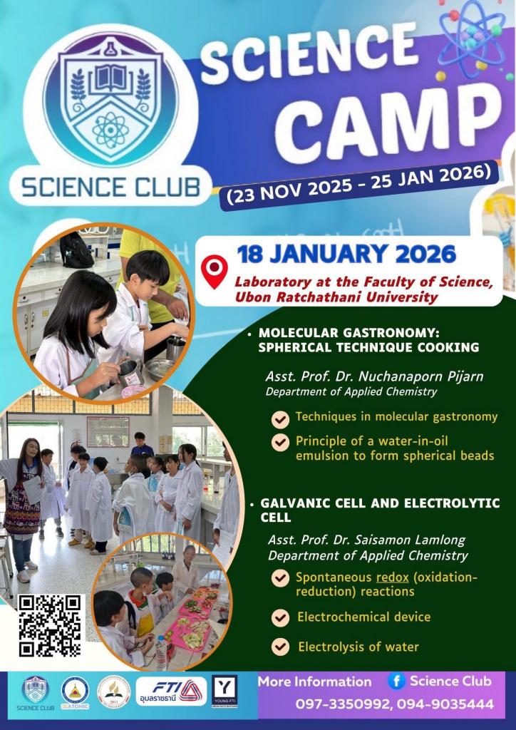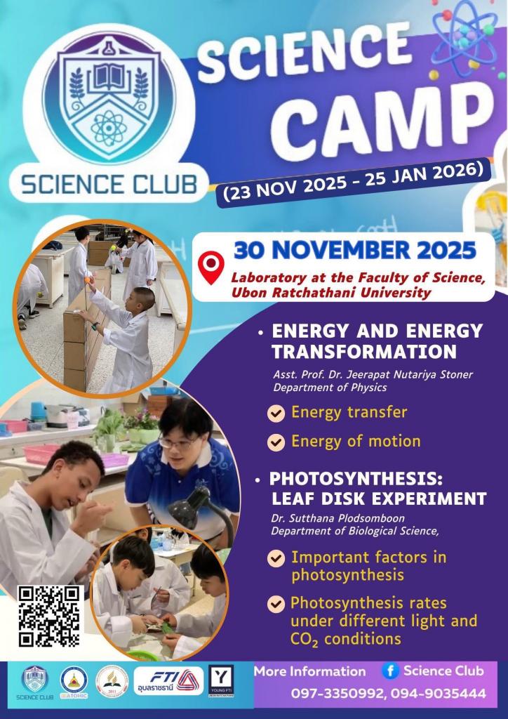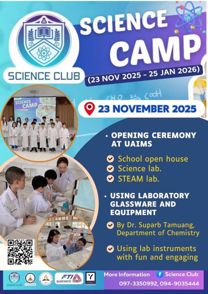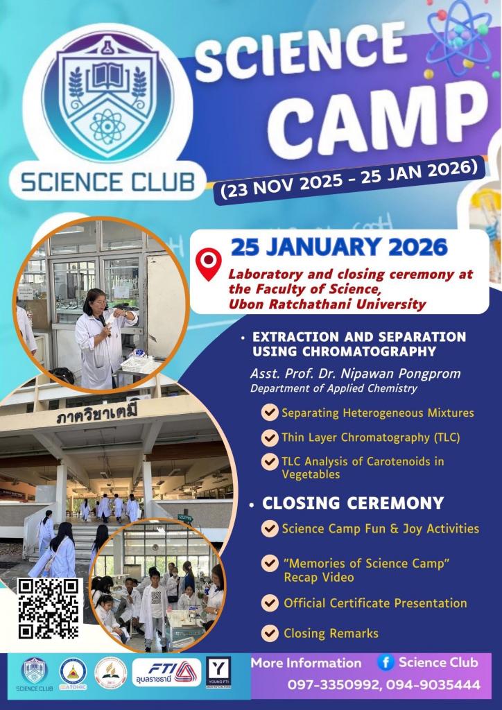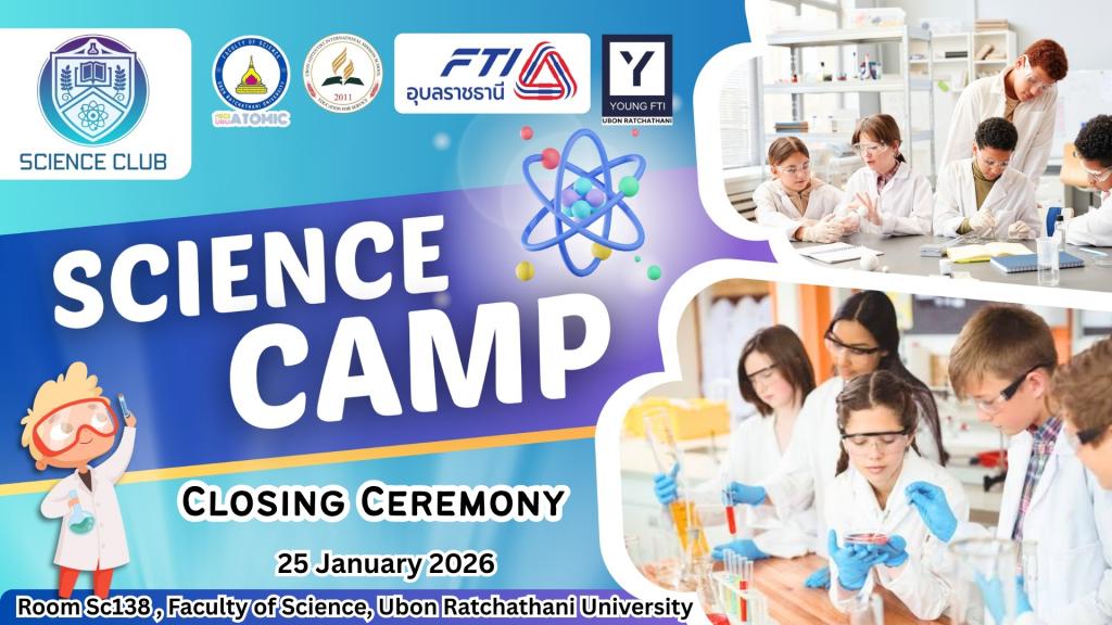 ? ? ? ? ? สำหรับโครงการ Science Campนี้ จัดขึ้นเป็นครั้งแรก โดยเกิดจากความร่วมมือของ 3 องค์กร คือ คณะวิทยาศาสตร์ มหาวิทยาลัยอุบลราชธานี, โรงเรียนนานาชาติแอดแวนติสมิชชั่นอุบล (Ubon Adventist International Mission School - UAIMS) และสภาอุตสาหกรรมจังหวัดอุบลราชธานี เพื่อร่วมกันปูพื้นฐานและสร้างแรงบันดาลใจด้านวิทยาศาสตร์ให้กับเยาวชนในภาคตะวันออกเฉียงเหนือตอนล่าง ซึ่งตลอดโครงการที่ผ่านมา (23 พฤศจิกายน 2568 - 25 มกราคม 2569) น้อง ๆ ได้เรียนรู้ผ่านประสบการณ์จริงในห้องปฏิบัติการด้วยภาษาอังกฤษ 100% ครอบคลุมกว่า 10หัวข้อการเรียนรู้ และความประทับใจตลอด 2 เดือนที่ผ่านมา