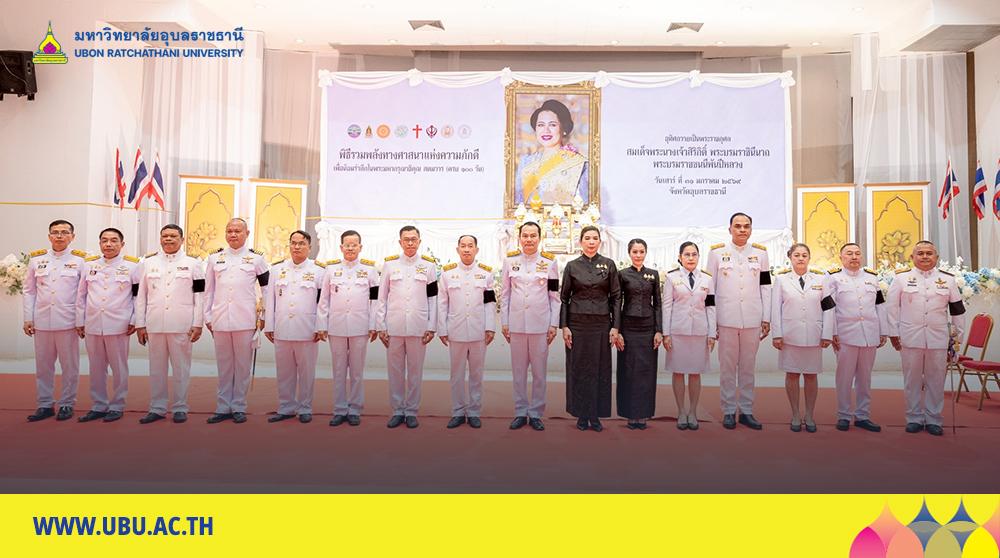 วันที่ 31 มกราคม 2569มหาวิทยาลัยอุบลราชธานี โดยมี นางสาวมัณฑนา เจือบุญ ผู้อำนวยการกองกลาง พร้อมด้วยบุคลากร ร่วมพิธีรวมพลังทางศาสนาแห่งความภักดีเพื่อน้อมรำลึกในพระมหากรุณาธิคุณ สตมวาร (ครบ 100วัน) และพิธีบำเพ็ญกุศลถวายพระราชกุศลครบ 100วัน “สตมวาร” ถวายพระราชกุศล สมเด็จพระนางเจ้าสิริกิติ์ พระบรมราชินีนาถ พระบรมราชชนนีพันปีหลวง โดยมี นายณรงค์ เทพเสนา ผู้ว่าราชการจังหวัดอุบลราชธานีเป็นประธานในพิธีรวมพลังทางศาสนาแห่งความภักดีเพื่อน้อมรำลึกในพระมหากรุณาธิคุณ สตมวาร (ครบ 100วัน) ถวายพระราชกุศล สมเด็จพระนางเจ้าสิริกิติ์ พระบรมราชินีนาถ พระบรมราชชนนีพันปีหลวง โดยมีผู้นำทางศาสนา 4ศาสนา ประกอบด้วยศาสนาพุทธ ศาสนาอิสลาม ศาสนาคริสต์ และศาสนาซิกข์ พร้อมด้วย ศาล อัยการ ทหาร ตำรวจ หัวหน้าส่วนราชการ ข้าราชการ ภาคเอกชน ประชาชน นักเรียน นักศึกษา เข้าร่วมในพิธี ณ ณ หอประชุมศาลากลางจังหวัดอุบลราชธานี
