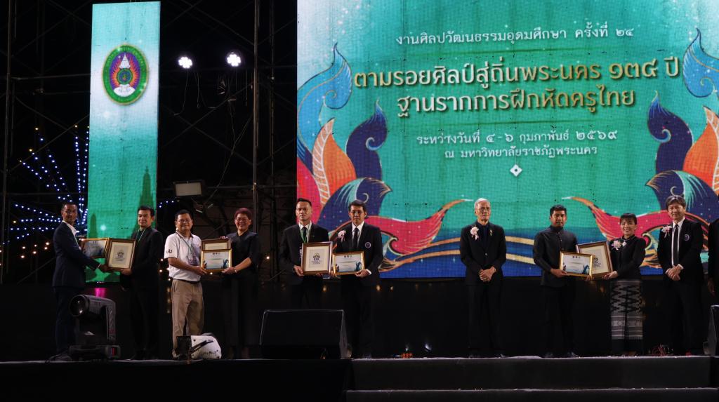 มหาวิทยาลัยอุบลราชธานี โดย ผู้ช่วยศาสตราจารย์ ดร.ปรีชา บุญจูง รองอธิการบดีฝ่ายพัฒนานักศึกษาและศิษย์เก่าสัมพันธ์ นำบุคลากร ผู้นำนักศึกษา และนักศึกษา เข้าร่วมงานศิลปวัฒนธรรมอุดมศึกษา ครั้งที่ 24 ภายใต้แนวคิด “ตามรอยศิลป์ สู่ถิ่นพระนคร 134 ปี ฐานรากการฝึกหัดครูไทย”เวทีแสดงความสามารถและรวมพลังสถาบันอุดมศึกษาทั่วประเทศ ร่วมการอนุรักษ์และเผยแพร่ศิลปวัฒนธรรมอันทรงคุณค่าของชาติ เมื่อวันที่ 4 กุมภาพันธ์ 2569 ที่ผ่านมา ณ มหาวิทยาลัยราชภัฏพระนคร