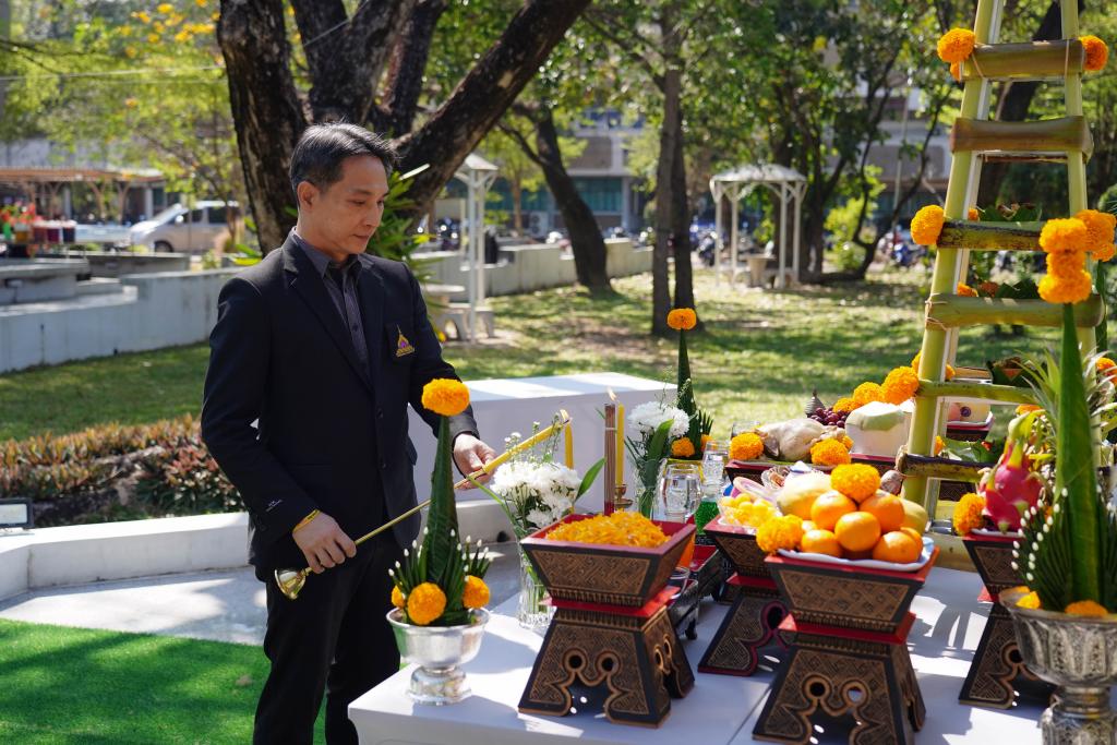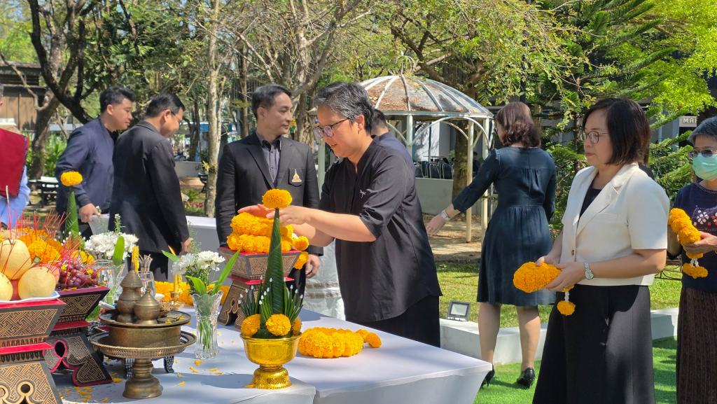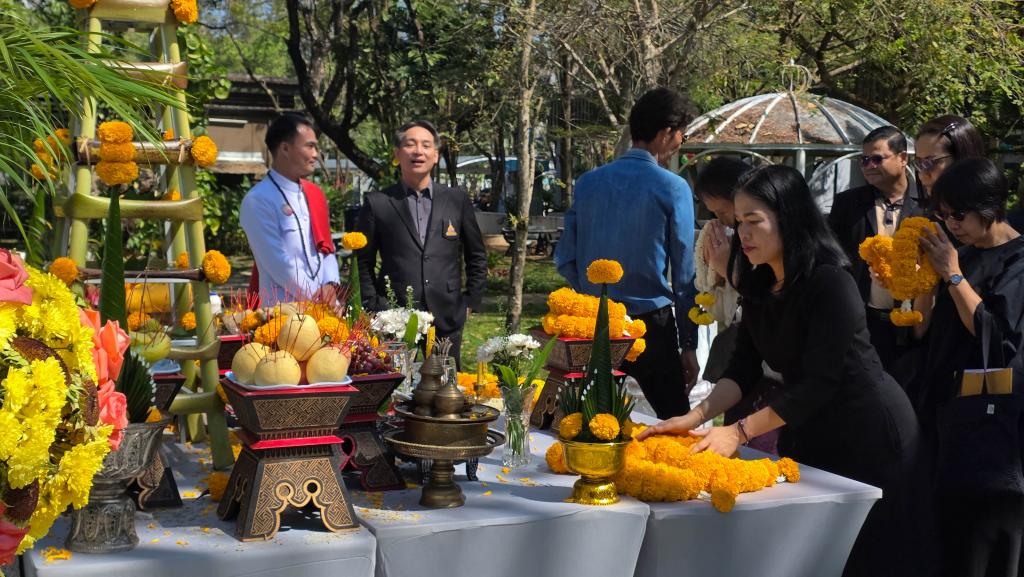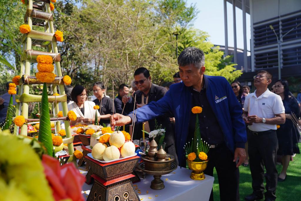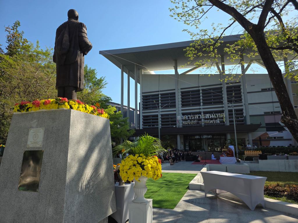 มหาวิทยาลัยอุบลราชธานี ร่วมกับ สมาคมศิษย์เก่ามหาวิทยาลัยอุบลราชธานี จัดพิธีทำบุญถวายภัตตาหารเพล และพิธีบวงสรวงสักการะอนุสรณ์สถาน รองศาสตราจารย์ ดร.สมจิตต์ ยอดเศรณี อธิการบดีผู้ก่อตั้งมหาวิทยาลัยอุบลราชธานี ในโอกาสครบรอบ 1 ปี แห่งการก่อตั้งอนุสรณ์สถาน เมื่อวันที่ 10 กุมภาพันธ์ 2569 ที่ผ่านมา โดยมี ผู้ช่วยศาสตราจารย์ ดร.เกรียงศักดิ์ แก้วกุลชัย รองอธิการบดีฝ่ายบริหาร เป็นประธาน นำคณะผู้บริหาร บุคลากร และนักศึกษา ประกอบพิธี ซึ่งมี นายเด่นชัย ดอกพอง นายกสมาคมศิษย์เก่าฯ พร้อมด้วยคณะลูกหลานและญาติของ รองศาสตราจารย์ ดร.สมจิตต์ ยอดเศรณี เข้าร่วมพิธีด้วยความระลึกถึง ณ บริเวณหน้าอาคารสารสนเทศสมจิตต์ ยอดเศรณี สำนักเทคโนโลยีดิจิทัลและทรัพยากรการเรียนรู้ (ODL)