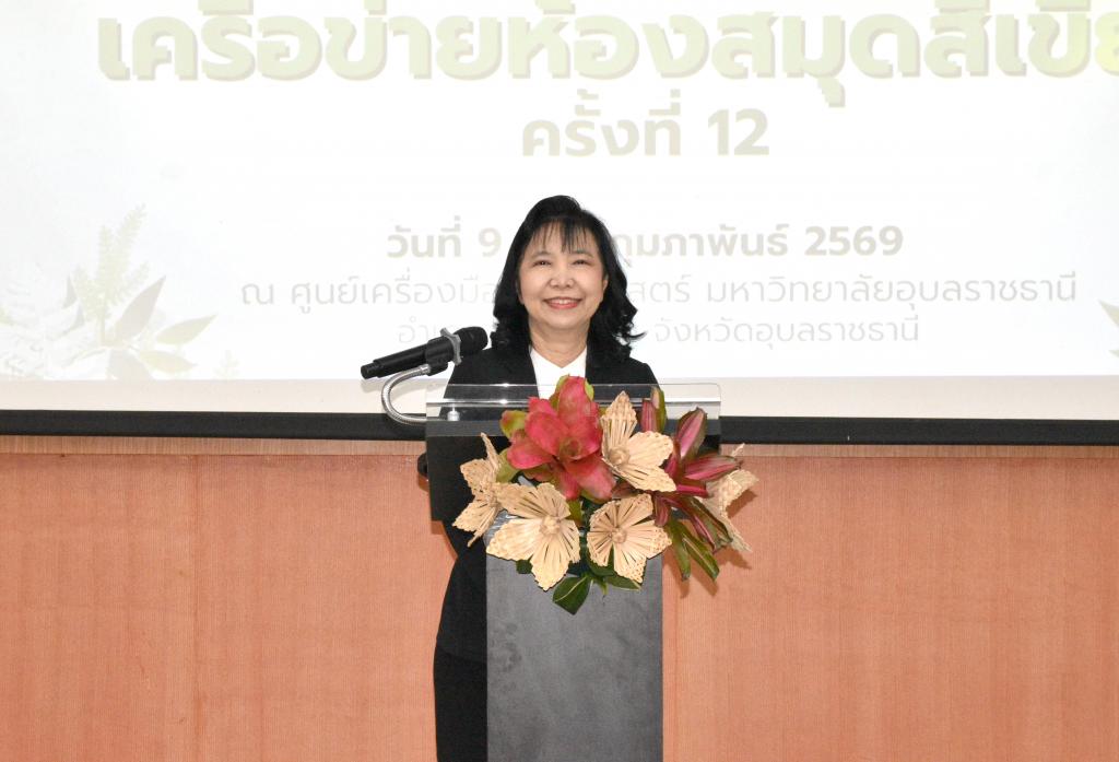 มหาวิทยาลัยอุบลราชธานี โดย สำนักเทคโนโลยีดิจิทัลและทรัพยากรการเรียนรู้ จัด “การสัมมนาเครือข่ายห้องสมุดสีเขียว ครั้งที่ 12 ประจำปี 2569” ภายใต้หัวข้อเรื่อง “พลังงานทดแทนเพื่อความยั่งยืน : มหัศจรรย์ 4 แสง จากแสงแรกสู่แสงแห่งอนาคต” เพื่อส่งเสริมการแลกเปลี่ยนเรียนรู้ด้านการอนุรักษ์พลังงานและสิ่งแวดล้อมในเครือข่ายห้องสมุดและหน่วยงานที่เกี่ยวข้องโดยมี รองศาสตราจารย์ ดร.ชุตินันท์ ประสิทธิ์ภูริปรีชา อธิการบดี เป็นประธาน และ ผู้ช่วยศาสตราจารย์ ดร.อธิพงศ์ สุริยา ผู้อำนวยการสำนักเทคโนโลยีดิจิทัลและทรัพยากรการเรียนรู้ มหาวิทยาลัยอุบลราชธานี กล่าวรายงานการสัมมนาเครือข่ายห้องสมุดสีเขียวครั้งนี้ เกิดจากความร่วมมือของเครือข่ายห้องสมุดสีเขียว โดยมีวัตถุประสงค์เพื่อแลกเปลี่ยนเรียนรู้แนวปฏิบัติที่ดีในการบริหารจัดการห้องสมุดที่เป็นมิตรกับสิ่งแวดล้อม และเพื่อสร้างความตระหนักรู้ด้านการอนุรักษ์พลังงานอย่างยั่งยืน เมื่อวันที่ 9 - 10 กุมภาพันธ์ 2569 ที่ผ่านมา ณ มหาวิทยาลัยอุบลราชธานี