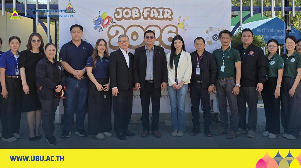 มหาวิทยาลัยอุบลราชธานี โดยสำนักงานพัฒนานักศึกษา จัดงาน "UBU Job Fair 2026" นำบริษัทชั้นนำเปิดบูธรับสมัครงาน พร้อมกิจกรรมอัปสกิลทักษะแห่งอนาคต มุ่งสร้างพื้นที่แห่งโอกาสให้เหล่านักศึกษา ศิษย์เก่า และประชาชนทั่วไปได้ก้าวสู่เส้นทางอาชีพอย่างมั่นคงโดยมีผู้ช่วยศาสตราจารย์ ดร.ปรีชา บุญจูง รองอธิการบดีฝ่ายพัฒนานักศึกษาและศิษย์เก่าสัมพันธ์ เป็นประธานเปิดงาน มีบริษัท สถานประกอบการชั้นนำมาเปิดรับสมัครงานและสัมภาษณ์ มากกว่า 15 แห่ง เข้าร่วม ณ บริเวณลานด้านข้างอาคารโรงอาหารกลาง 1-2 มหาวิทยาลัยอุบลราชธานี เมื่อวันที่ 13 กุมภาพันธ์ 2569