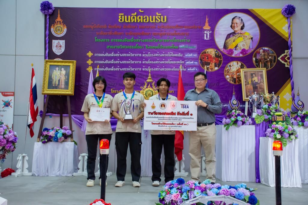 รางวัลชนะเลิศ ถ้วยพระราชทานสมเด็จพระกนิษฐาธิราชเจ้า กรมสมเด็จพระเทพรัตนราชสุดาฯ สยามบรมราชกุมารี ประเภทการแข่งขัน โครงสร้างไม้และเหล็ก ครั้งที่ 10 ได้แก่ ทีมกันเกรา 1โครงสร้างไม้และเหล็ก สามารถรับน้ำหนักได้สูงสุด 420 กิโลกรัม สมาชิก ทีมกันเกรา 1ประกอบด้วย นายอัมรินทร์ ทองเหลือง นายบัลลังก์ ทองเพ็ชร์ และนายเขมรัตน์ แสงจันทร์นวล