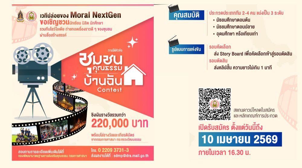 การประกวดการผลิตสื่อคุณธรรมสำหรับเด็กและเยาวชน ภายใต้หัวข้อ “ชุมชนคุณธรรมบ้านฉัน” ประจำปีงบประมาณ 2569