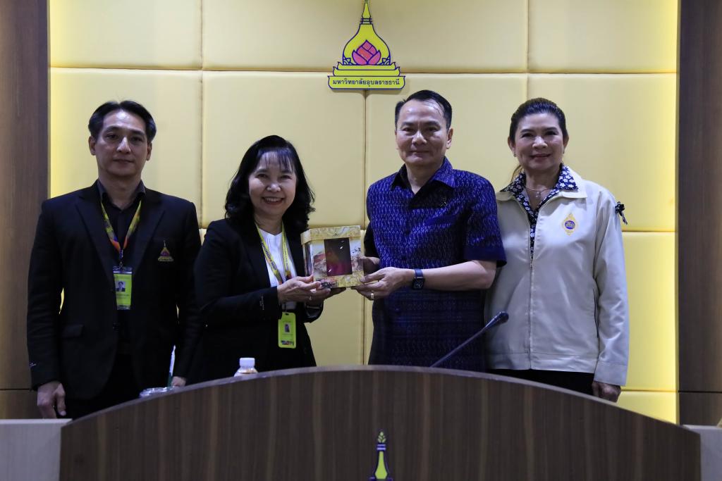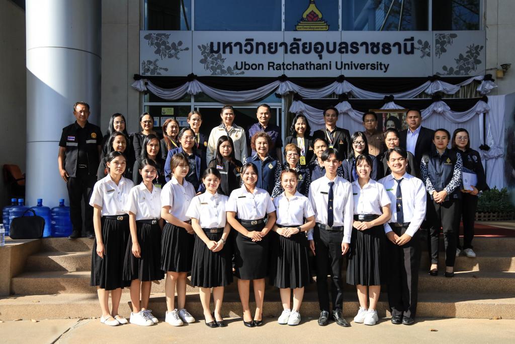 มหาวิทยาลัยอุบลราชธานี โดย รองศาสตราจารย์ ดร.ชุตินันท์ ประสิทธิ์ภูริปรีชา อธิการบดี พร้อมคณะผู้บริหาร บุคลากร และนักศึกษาทุนพระราชทาน ร่วมให้การต้อนรับ นายณรงค์ เทพเสนา ผู้ว่าราชการจังหวัดอุบลราชธานี ประธานคณะกรรมการตรวจเยี่ยมนักเรียนทุนพระราชทาน และ นายกเหล่ากาชาดจังหวัดอุบลราชธานี และคณะกรรมการฯ ในโอกาสลงพื้นที่ติดตามและเยี่ยมนักเรียนทุนการศึกษาพระราชทาน สมเด็จพระบรมโอรสาธิราชฯ สยามมกุฎราชกุมาร (ม.ท.ศ.) รุ่นที่ 11-17 ประจำไตรมาสที่ 2 ปีงบประมาณ พ.ศ. 2569 ที่ได้รับทุนการศึกษา จำนวน 11 ราย ซึ่งมีสำนักงานพัฒนานักศึกษาในการกำกับดูแลนักศึกษาทุน ทั้งนี้ นักศึกษาได้รายงานผลการเรียน การใช้จ่ายเงินทุนการศึกษา แก่คณะกรรมการ ณ ห้องประชุมวารินชำราบ ชั้น 3 สำนักงานอธิการบดี 2 เมื่อวันที่ 20 กุมภาพันธ์ 2569 ที่ผ่านมา