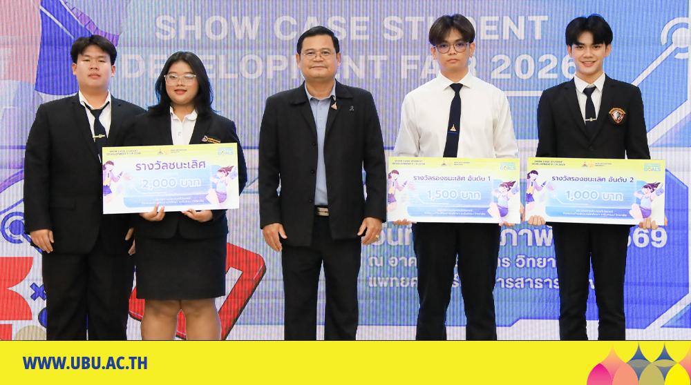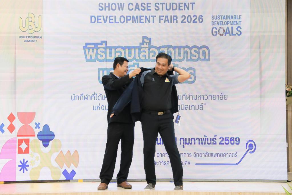 มหาวิทยาลัยอุบลราชธานี โดยสำนักงานพัฒนานักศึกษา จัดกิจกรรม "UBU Showcase Student Development Fair 2026"เพื่อเชิดชูเกียรตินักศึกษาที่มีผลงานโดดเด่น ทั้งด้านการประกวดผลงานวิชาการด้านการพัฒนานักศึกษา และกลุ่มผู้นำนักศึกษาที่ปฏิบัติงานร่วมกับสำนักงานพัฒนานักศึกษา ในปีการศึกษา 2568 ที่ผ่านมา โดยมี ผู้ช่วยศาสตราจารย์ ดร.ปรีชา บุญจูง รองอธิการบดีฝ่ายพัฒนานักศึกษาและศิษย์เก่าสัมพันธ์ เป็นประธานพิธีเปิด พร้อมมอบโล่เชิดชูเกียรติ เกียรติบัตร และรางวัลแก่นักศึกษา ณ ห้องประชุมชั้น 3 อาคารโภชนาการ วิทยาลัยแพทยศาสตร์และการสาธารณสุข เมื่อวันที่ 21 กุมภาพันธ์ 2569 ที่ผานมา