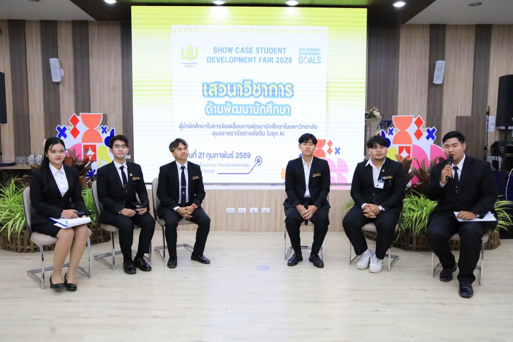 ผู้ช่วยศาสตราจารย์ ดร.ปรีชา บุญจูง รองอธิการบดีฝ่ายพัฒนานักศึกษาและศิษย์เก่าสัมพันธ์ กล่าวว่า โครงการ UBU Showcase Student Development Fair 2026เป็นเวทีสำคัญในการแสดงศักยภาพ และสร้างความภาคภูมิใจแก่นักศึกษา ผ่านกิจกรรมเสริมหลักสูตร โดยมุ่งเน้นการส่งเสริมให้นักศึกษามีโอกาสพัฒนาทักษะทั้งด้านวิชาการ วิชาชีพ และสมรรถนะที่จำเป็นในอนาคต ในงานจัดให้มีกิจกรรมที่หลากหลาย อาทิการเสวนาวิชาการ : หัวข้อการพัฒนานักศึกษาในยุค AI การจัดแสดงนิทรรศการโชว์ผลงานและศักยภาพของนักศึกษาในด้านต่างๆ พิธีมอบรางวัล ประกาศผลและมอบรางวัลผลงานด้านการพัฒนานักศึกษา กิจกรรมนันทนาการ การแสดงด้านกีฬาและศิลปวัฒนธรรม มอบโล่และเกียรติบัตรเชิดชูเกียรติผู้นำนักศึกษา ได้แก่ นายกองค์การนักศึกษา ประธานสภานักศึกษา และนายกสโมสรนักศึกษาทุกคณะ ประจำปีการศึกษา 2568