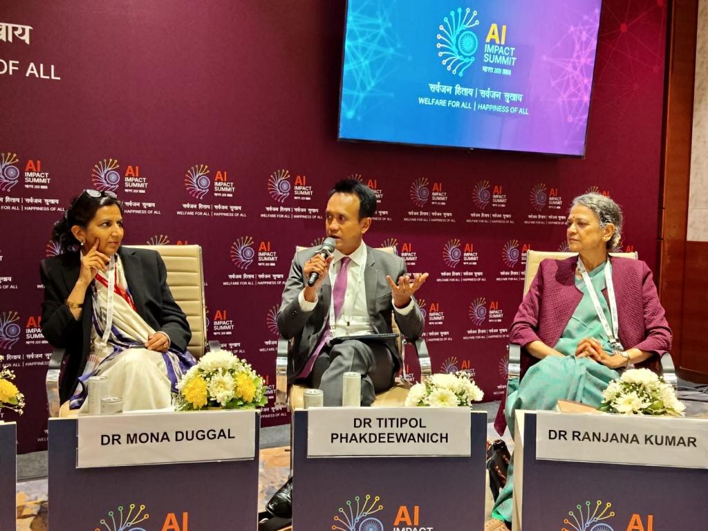 เมื่อวันที่ 18 กุมภาพันธ์ 2569 ณ Bharat Mandapam กรุงนิวเดลี ประเทศอินเดีย ดร.ฐิติพล ภักดีวานิช ผู้อำนวยการศูนย์ศึกษาและประสานงานด้านสิทธิมนุษยชนส่วนภูมิภาค และสมาชิกกลุ่มศึกษานโยบายและนวัตกรรม คณะรัฐศาสตร์ มหาวิทยาลัยอุบลราชธานี เข้าร่วมงาน India AI Impact Summit 2026 ณ กรุงนิวเดลี ประเทศอินเดีย ตามคำเชิญของ DAKSHIN – Global South Centre of Excellence แห่ง Research and Information System for Developing Countries (RIS) โดยร่วมเสวนาในหัวข้อ “Workforce Readiness for Artificial Intelligence in Primary Healthcare” และ “Safe and Trusted AI: The Ethics and Governance Perspective” เพื่อแลกเปลี่ยนมุมมองด้านสิทธิมนุษยชน จริยธรรม และธรรมาภิบาลของ AI พร้อมทั้งส่งเสริมความร่วมมือใต้–ใต้ (South–South Cooperation) ในการประยุกต์ใช้เทคโนโลยีอย่างรับผิดชอบ เพื่อยกระดับคุณภาพชีวิต สุขภาวะ และการดูแลสุขภาพของชุมชนท้องถิ่นและพื้นที่ชนบทของไทย อันจะนำไปสู่การกระชับความร่วมมือทางวิชาการระหว่างคณะรัฐศาสตร์ มหาวิทยาลัยอุบลราชธานี กับ DAKSHIN – Global South Centre of Excellence แห่ง Research and Information System for Developing Countries ให้แน่นแฟ้นยิ่งขึ้น