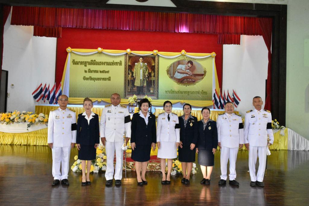 มหาวิทยาลัยอุบลราชธานี โดย นางสาวมัณฑนา เจือบุญ ผู้อำนวยการกองกลาง สำนักงานอธิการบดี พร้อมบุคลากร ร่วมพิธีถวายเครื่องราชสักการะแด่พระบาทสมเด็จพระบรมชนกาธิเบศร มหาภูมิพลอดุลยเดชมหาราชบรมนาถบพิตร “พระบิดาแห่งมาตรฐานการช่างไทย” เนื่องในวันมาตรฐานฝีมือแรงงานแห่งชาติ ประจำปี 2569 โดยมี นายณรงค์ เทพเสนา ผู้ว่าราชการจังหวัดอุบลราชธานี เป็นประธานประกอบพิธีถวายราชสักการะแด่พระบาทสมเด็จพระบรมชนกาธิเบศร มหาภูมิพลอดุลยเดชมหาราช บรมนาถบพิตร เนื่องในวันมาตรฐานฝีมือแรงงานแห่งชาติ โดยมีข้าราชการ ทหาร ตำรวจ ภาคเอกชน องค์กรอิสระ และประชาชน ร่วมถวายราชสักการะ วางพานพุ่มดอกไม้สดโทนสีขาวหรือสีเหลือง และถวายราชสดุดีเทิดพระเกียรติพระบาทสมเด็จพระบรมชนกาธิเบศร มหาภูมิพลอดุลยเดชมหาราช บรมนาถบพิตร ในฐานะทรงเป็น “พระบิดาแห่งมาตรฐานการช่างไทย” เพื่อเป็นการเทิดพระเกียรติ ตามที่สำนักนายกรัฐมนตรีมีมติเห็นชอบเมื่อวันที่ 17 กุมภาพันธ์ 2552 เพื่อเทิดพระเกียรติ น้อมระลึกในพระมหากรุณาธิคุณ และถวายราชสดุดีในพระปรีชาสามารถทางด้านการช่างของพระบาทสมเด็จพระบรมชนกาธิเบศร มหาภูมิพลอดุลยเดชมหาราชบรมนาถบพิตร ในฐานะทรงเป็น “พระบิดาแห่งมาตรฐานการช่างไทย” รวมทั้งทรงให้ความสำคัญในการพัฒนาฝีมือแรงงานของช่างไทยให้มีความเป็นมาตรฐาน และกำหนดให้ทุกวันที่ 2 มีนาคมของทุกปี เป็น “วันมาตรฐานฝีมือแรงงานแห่งชาติ” จัดโดย สถาบันพัฒนาฝีมือแรงงาน 7 อุบลราชธานี เมื่อวันจันทร์ที่ 2 มีนาคม 2569 ณ อาคารอเนกประสงค์ สถาบันพัฒนาฝีมือแรงงาน 7 อุบลราชธานี