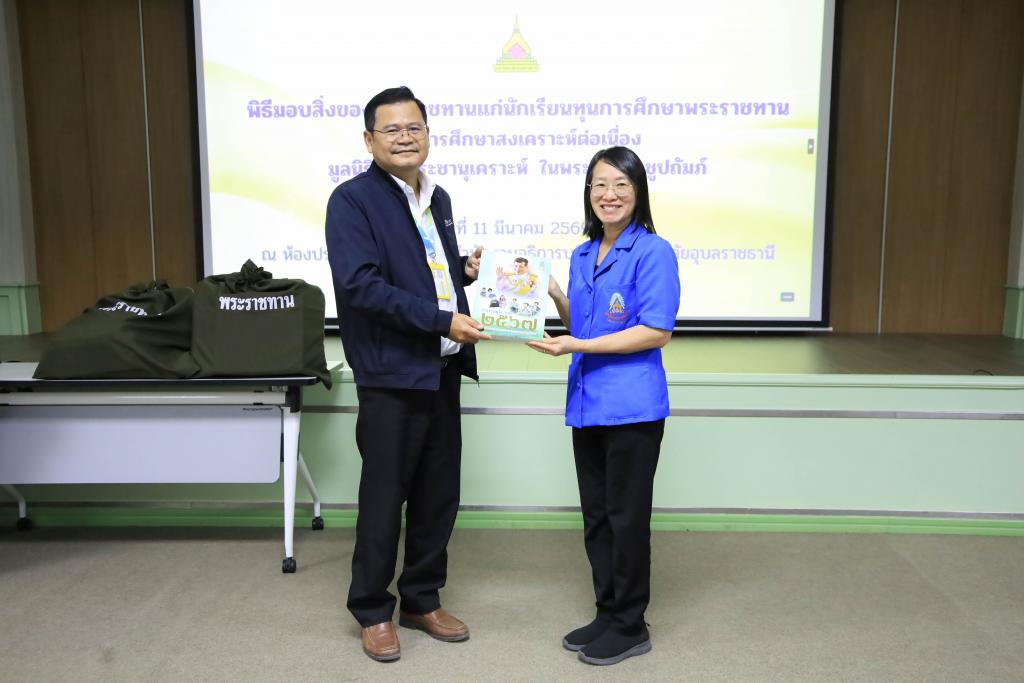 ผู้ช่วยศาสตราจารย์ ดร.ปรีชา บุญจูง รองอธิการบดีฝ่ายพัฒนานักศึกษาและศิษย์เก่าสัมพันธ์ กล่าวว่าทุนการศึกษาพระราชทานฯ เปรียบเสมือนแสงแห่งความหวังและกำลังใจอัน ยิ่งใหญ่ที่ทรงพระกรุณา พระราชทานแก่เยาวชนของชาติ เพื่อให้มีโอกาสได้เรียนรู้พัฒนาศักยภาพและเติบโต เป็นบุคลากรที่มีคุณค่าในการรับใช้สังคมและประเทศชาติ มหาวิทยาลัยอุบลราชธานี ในฐานะสถาบันอุดมศึกษาในภูมิภาคตะวันออกเฉียงเหนือ มีความสำนึกในพระมหากรุณาธิคุณอย่างหาที่สุดมิได้ และพร้อมปฏิบัติภารกิจในการกำกับดูแล ส่งเสริม และพัฒนานักเรียนทุนพระราชทานให้ได้รับการศึกษาอย่างมีคุณภาพ ควบคู่กับการปลูกฝังจิตสำนึกแห่งการตอบแทนคุณแผ่นดินสมดังพระราชปณิธานทุกประการ
