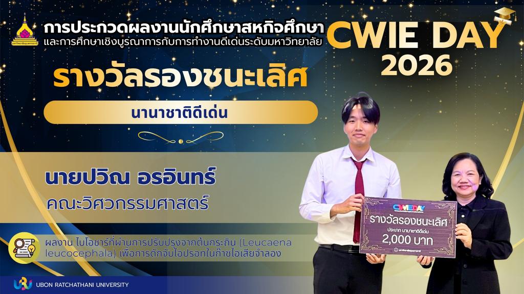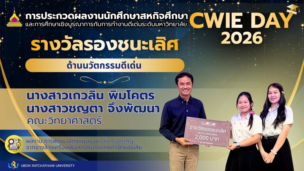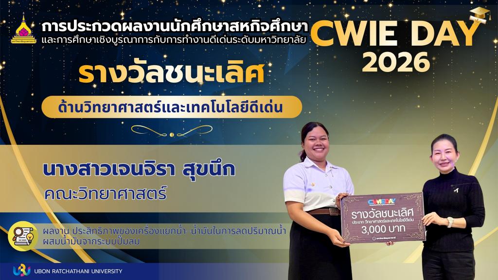 สำหรับผลการประกวด CWIE DAY 2026 ผลงานที่โดดเด่นได้รับรางวัลในประเภทต่างๆ ดังนี้