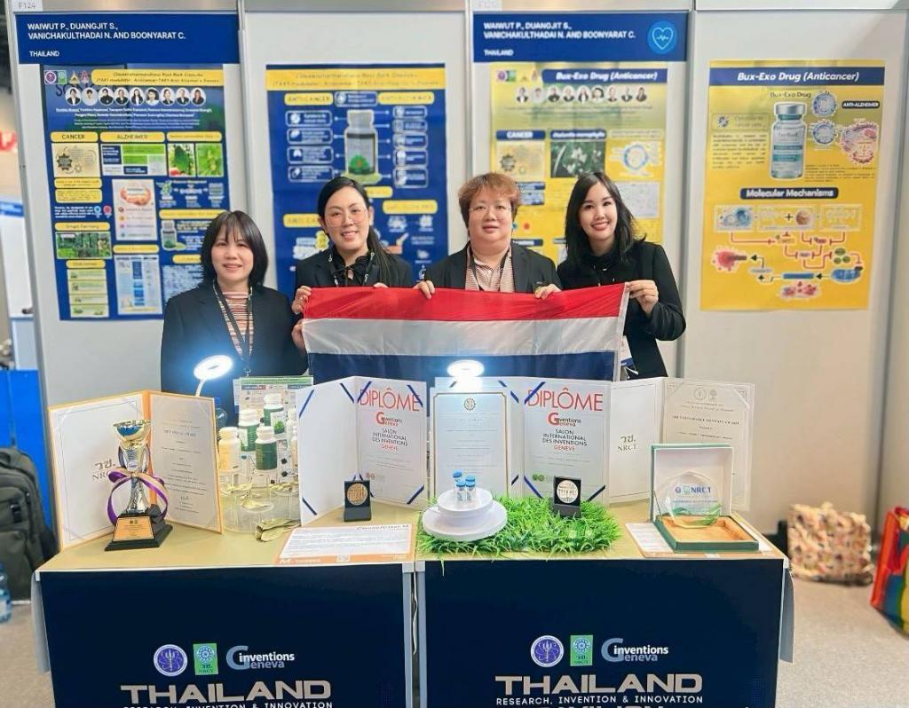 ผลงานวิจัย Bux-Exo Drugs (Anti-Cancer)นวัตกรรม Exosome บรรจุสารสำญBuxifoliadine E ที่มีประสิทธิภาพสูงในการยับยั้งเซลล์มะเร็งตับ โดยไม่ทำลายเซลล์ปกติ ได้รับ 3 รางวัล ได้แก่