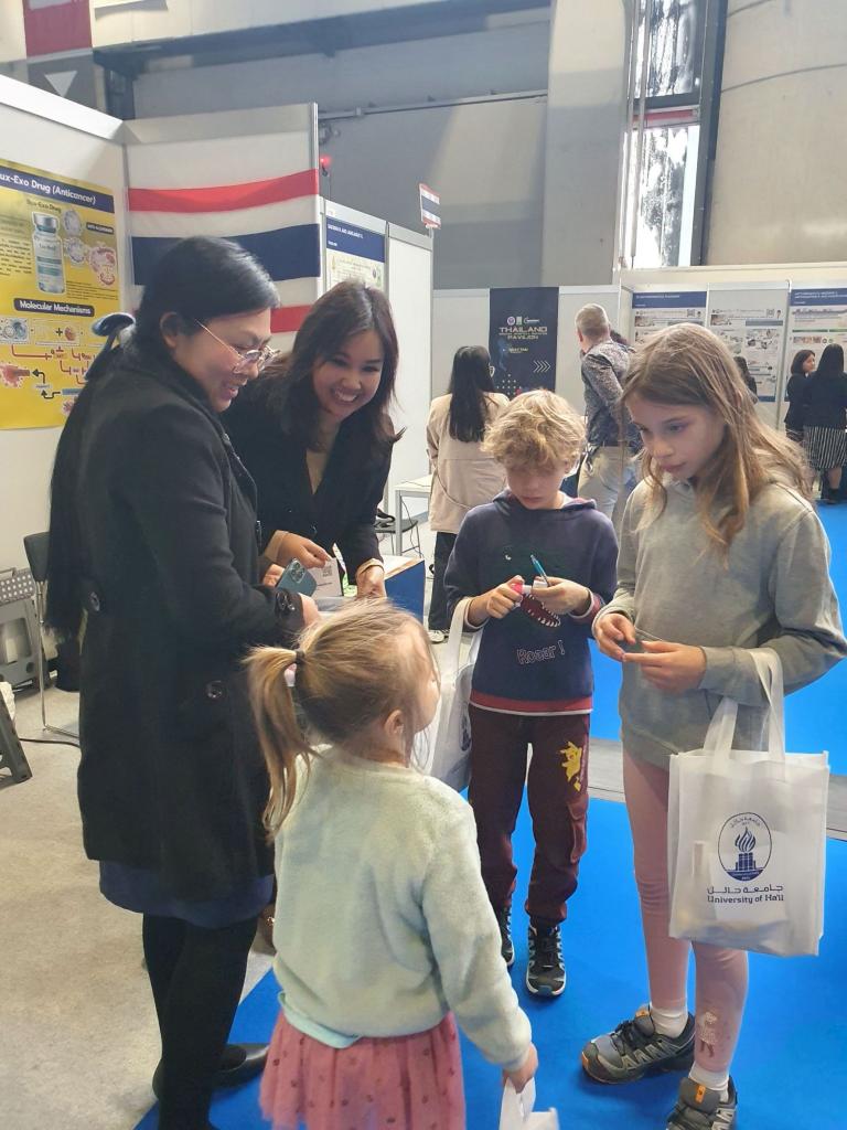 รองศาสตราจารย์ ดร.พรทิพย์ ไววุฒิ หัวหน้าทีมนักวิจัย เปิดเผยว่า The 51st International Exhibition of Inventions Geneva ถือเป็นเวทีที่เก่าแก่และใหญ่ที่สุดในทวีปยุโรป และเป็นเวทีที่ได้รับความสนใจจากนักประดิษฐ์ นักวิจัย นักลงทุน และนักวิชาการจากทั่วโลก ซึ่งจัดขึ้นโดย PALEXPO SA ร่วมกับ International Federation of Inventors' Associations (IFIA) สหพันธ์สมาคมนักประดิษฐ์นานาชาติ โดยสำนักงานการวิจัยแห่งชาติ (วช.) ได้คัดเลือกผลงานวิจัยของ มหาวิทยาลัยอุบลราชธานี ร่วมนำเสนอ 2 ผลงาน ได้แก่ แคปซูลเปลือกรากส่องฟ้าต้านมะเร็ง (Clausena harmandiana Root Bark Capsules – Anti-Cancer) และ Bux-Exo Drugs (Anti-Cancer) ประสบความสำเร็จคว้า 5 รางวัล ดังนี้