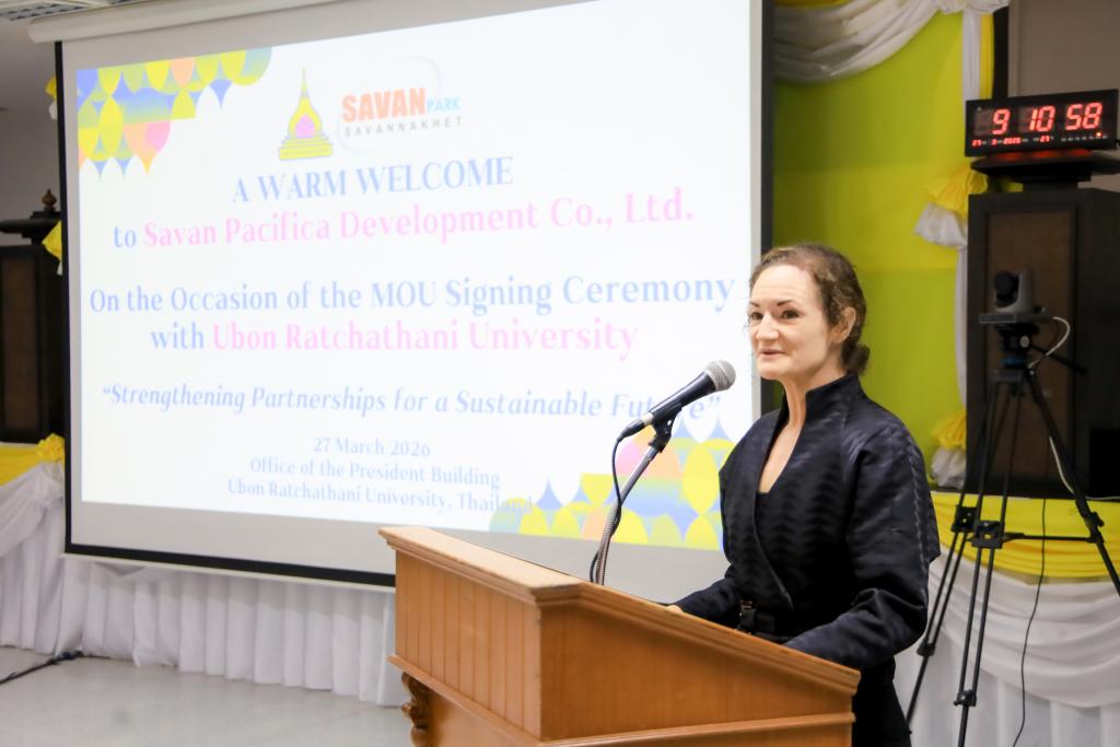 วันที่ 27 มีนาคม 2569 มหาวิทยาลัยอุบลราชธานี (มอบ.) จัดพิธีลงนามบันทึกความเข้าใจ (MOU) ร่วมกับ บริษัท Savan Pacifica Development Co., Ltd. จาก สาธารณรัฐประชาธิปไตยประชาชนลาว ณ ห้องประชุมพิบูลมังสาหาร มหาวิทยาลัยอุบลราชธานี เพื่อส่งเสริมความร่วมมือด้านการศึกษา การฝึกงาน และการพัฒนาบุคลากรระหว่างสองประเทศ โดยมี รองศาสตราจารย์ ดร.ชุตินันท์ ประสิทธิ์ภูริปรีชา อธิการบดีมหาวิทยาลัยอุบลราชธานี นำ คณะผู้บริหาร บุคลากร ให้การต้อนรับ Mr. Tee Chee Seng กรรมการบริหาร บริษัท Savan Pacifica Development และคณะ