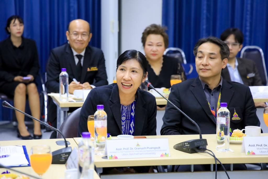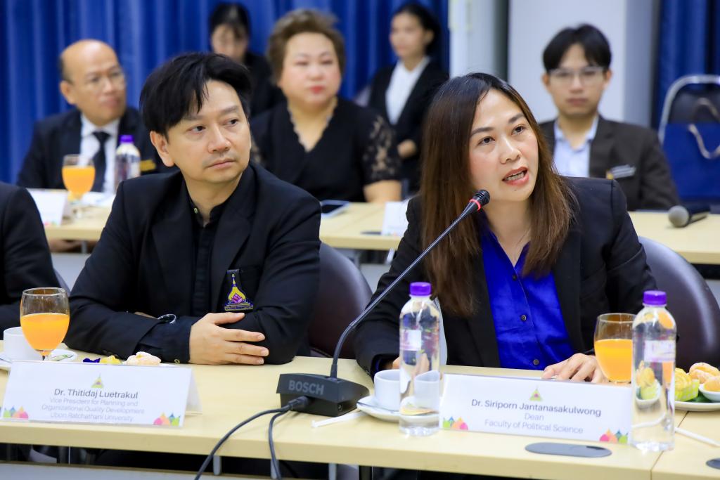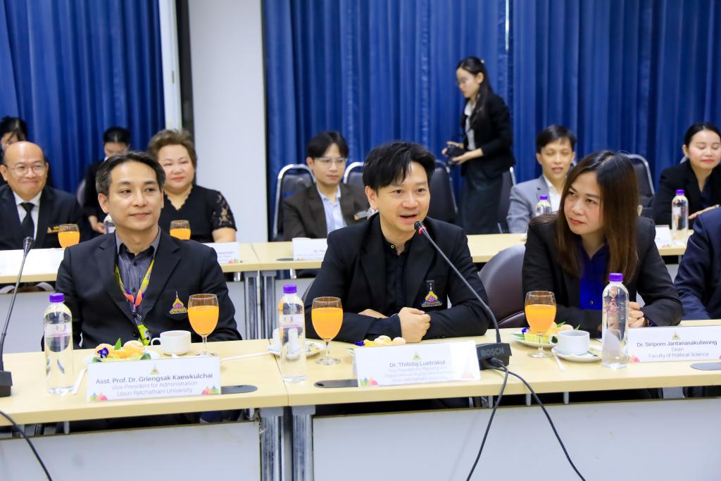 โอกาสนี้ ดร.ศิริพร จันทนสกุลวงศ์ คณบดีคณะรัฐศาสตร์ มหาวิทยาลัยอุบลราชธานี และผู้แทนจากทางบริษัท ต่างได้นำเสนอรายละเอียดความร่วมมือ ซึ่งมุ่งเน้นไปที่การแลกเปลี่ยนองค์ความรู้ การสนับสนุนการฝึกงานของนักศึกษา และการสร้างโอกาสทางอาชีพในระดับภูมิภาค พร้อมหารือแนวทางการต่อยอดโครงการร่วมกันในอนาคต