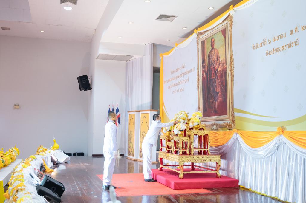 วันที่ 6 เมษายน 2569 เวลา 09.00 น. ณ หอประชุมจังหวัดอุบลราชธานี ศูนย์ราชการจังหวัดอุบลราชธานี นางสาวมัณฑนา เจือบุญ ผู้อำนวยการกองกลาง นำบุคลากร ร่วมวางพานพุ่มดอกไม้สดเบื้องหน้าพระบรมสาทิสลักษณ์พระบาทสมเด็จพระพุทธยอดฟ้าจุฬาโลกมหาราช เนื่องในวันพระบาทสมเด็จพระพุทธยอดฟ้าจุฬาโลกมหาราช และวันที่ระลึกมหาจักรีบรมราชวงศ์ ประจำปี พ.ศ. 2569 โดยมี นายณรงค์ เทพเสนา ผู้ว่าราชการจังหวัดอุบลราชธานี เป็นประธาน นำส่วนข้าราชการ ศาล อัยการ ทหาร ตำรวจ เหล่ากาชาดจังหวัด ชมรมแม่บ้านมหาดไทยจังหวัด รัฐวิสาหกิจ ภาคเอกชน ประกอบพิธีถวายราชสักการะ เพื่อน้อมรำลึกในพระมหากรุณาธิคุณของของพระองค์ที่ทรงเป็นปฐมกษัตริย์แห่งพระบรมราชจักรีวงศ์ และสมเด็จพระมหากษัตริยาธิราชเจ้าทุกพระองค์ ในพระบรมราชจักรีวงศ์ ที่ทรงมีต่อประเทศชาติและพสกนิกรชาวไทยทุกหมู่เหล่า ทั้งเป็นการแสดงความจงรักภักดี และเทิดทูนสถาบันพระมหากษัตริย์ อีกทั้งยังเป็นการปลูกจิตสำนึกให้ประชาชนได้ร่วมกันรักษาไว้ซึ่งสถาบันหลักของชาติอย่างมั่นคงสืบไป