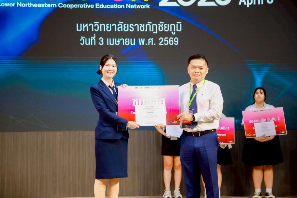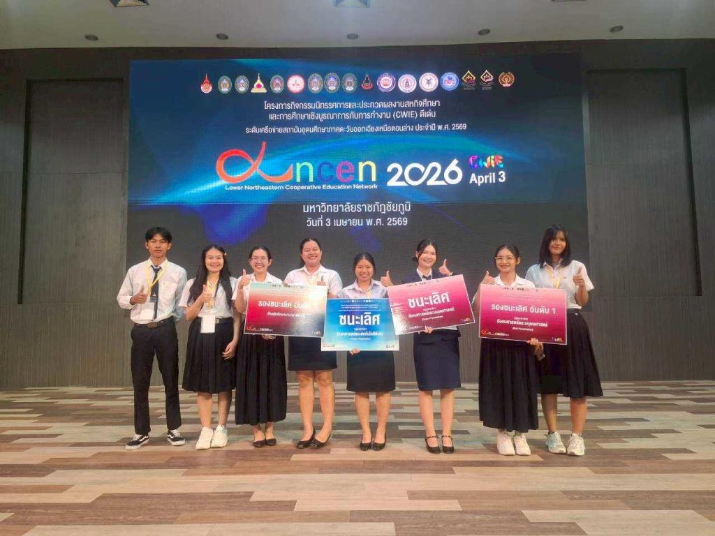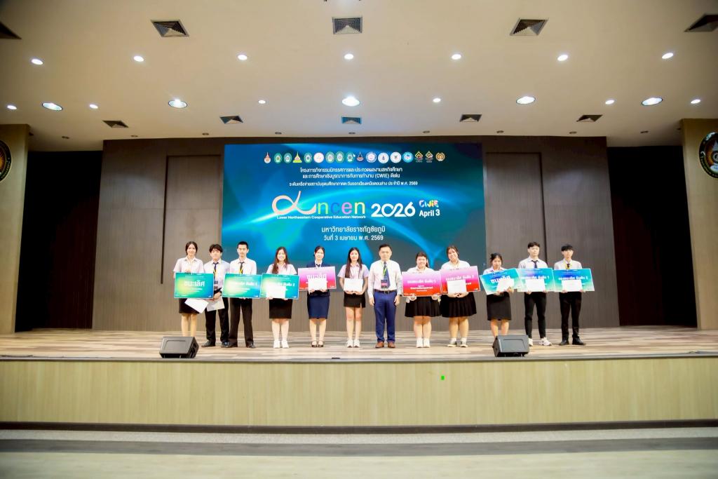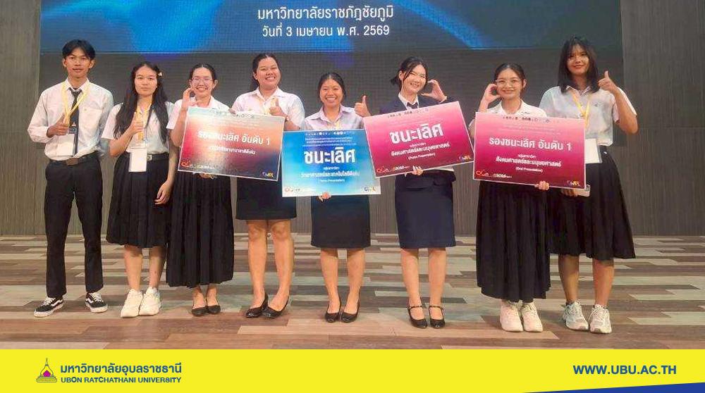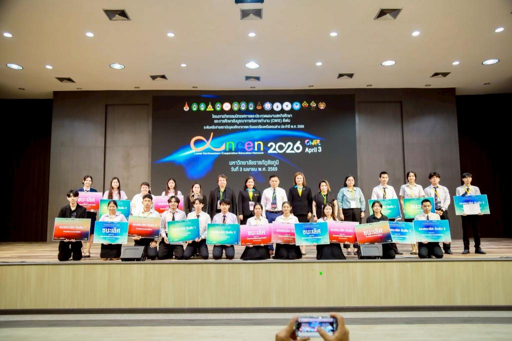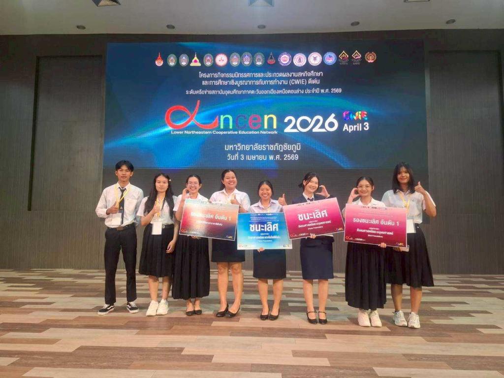 มหาวิทยาลัยอุบลราชธานี โดย ดร.อนุสรณ์ บรรเทิง ผู้ช่วยอธิการบดีฝ่ายสารสนเทศทางการศึกษา และคณะ นำนักศึกษาผู้แทนมหาวิทยาลัยฯ เข้าร่วมโครงการนิทรรศการและประกวดผลงานสหกิจศึกษาและการศึกษาเชิงบูรณาการกับการทำงาน (CWIE) ดีเด่น ระดับเครือข่ายสถาบันอุดมศึกษาภาคตะวันออกเฉียงเหนือตอนล่าง ประจำปี 2569 โดยผลงานนักศึกษาสามารถสร้างชื่อเสียงในการประกวด คว้า 4 รางวัล รางวัลชนะเลิศ 2 รางวัล และรองชนะเลิศ 2 รางวัล มีสถาบันเครือข่ายอุดมศึกษาภาคตะวันออกเฉียงเหนือตอนล่าง จำนวน 9 สถาบัน เข้าร่วมนำเสนอผลงาน ในรูปแบบออนไลน์ และแบบ Onsite นำผลงานเข้าประกวด 2 ประเภท ได้แก่ การนำเสนอแบบปากเปล่า (Oral Presentation) จำนวน 40 ผลงาน และการนำเสนอแบบโปสเตอร์ (Poster Presentation) จำนวน 26 ผลงาน ณ มหาวิทยาลัยราชภัฏชัยภูมิ จังหวัดชัยภูมิ เมื่อวันที่ 3 เมษายน 2569 ที่ผ่านมา