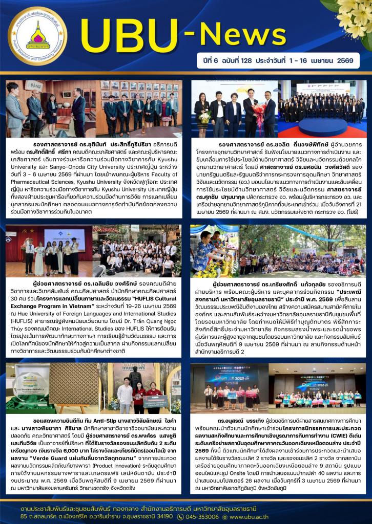 UBU NEWS ปีที่ 6 ฉบับที่ 128 ประจำวันที่ 1 - 16 เมษายน 2569