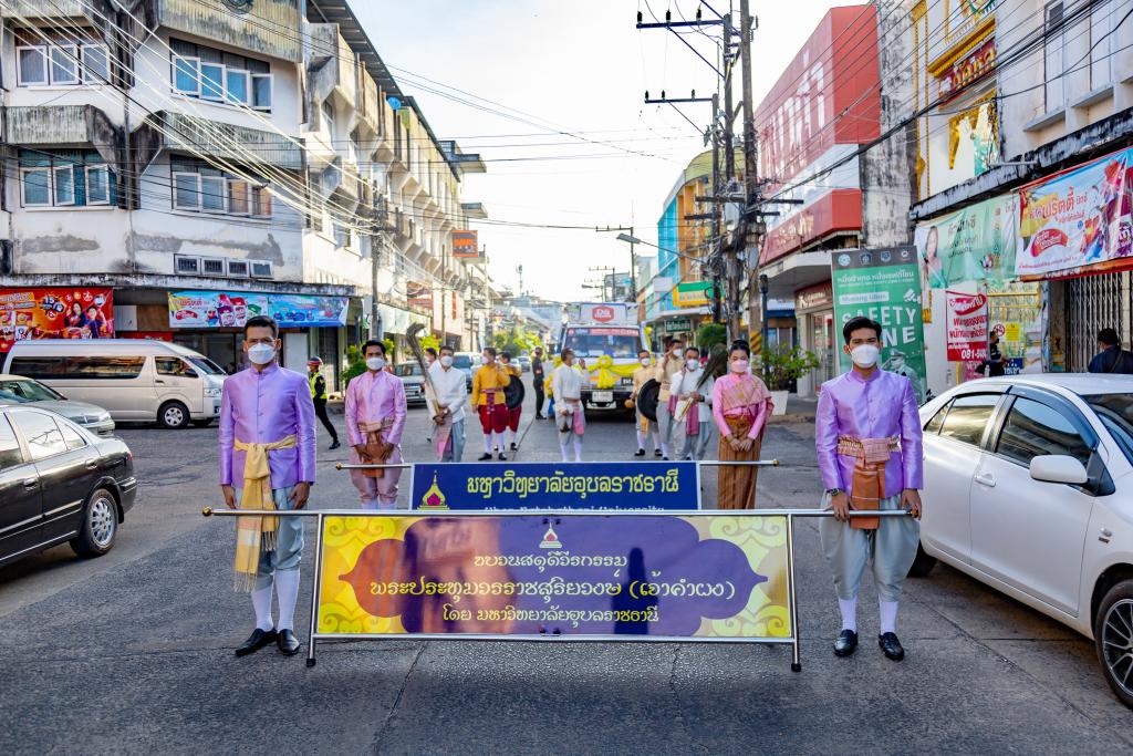 เมื่อวันพุธที่ 10 พฤศจิกายน 2564 มหาวิทยาลัยอุบลราชธานี ได้จัดงานและร่วมในพิธีบวงสรวงและสดุดีพระประทุมวรราชสุริยวงศ์ (ท้าวคำผง) เจ้าเมืองคนแรกของเมืองอุบลฯ ประจำปี 2564 โดยมี ดร.ปิยณัฐ สร้อยคำ ผู้ช่วยอธิการบดีฝ่ายสื่อสารองค์กรและพันธกิจสัมพันธ์ ผศ.ดร.สงวน ธานี คณบดีคณะพยาบาลศาสตร์ นางสาวมัณฑนา เจือบุญ ผู้อำนวยการกองกลาง สำนักงานอธิการบดี นำบุคลากร ร่วมขบวนแห่เครื่องยศเจ้าเมืองเพื่อเป็นการสดุดี พระประทุมวรราชสุริยวงศ์ พร้อมร่วมบรรเลงดนตรีไทยในริ้วขบวน โดย คณะศิลปศาสตร์ และอำนวยความสะดวกในพิธีวางขันหมากเบ็ง สักการะ โดย นักศึกษาวิชาทหาร โอกาสนี้ นายพงศ์รัตน์ ภิรมย์รัตน์ ผู้ว่าราชการจังหวัดอุบลราชธานี ได้ให้เกียรติเป็นประธานในการประกอบพิธี