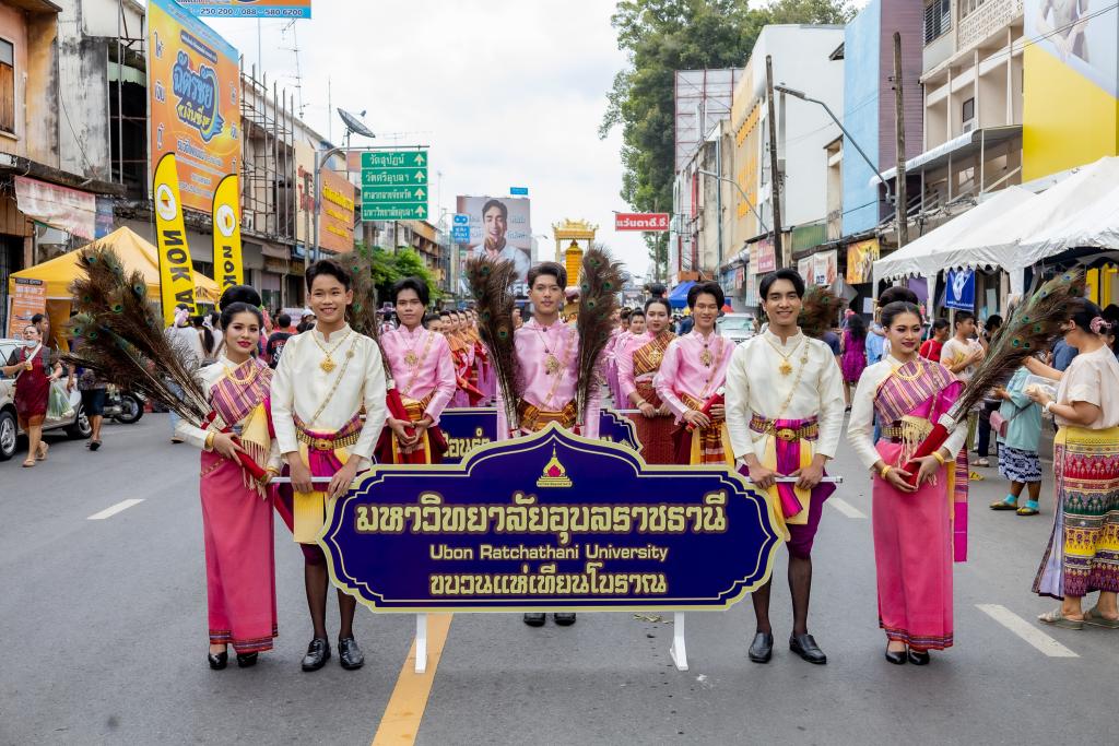 มหาวิทยาลัยอุบลราชธานี ร่วมสืบสานงานประเพณีแห่เทียนพรรษา จังหวัดอุบลราชธานี ประจำปี 2568 โดยนำขบวนแห่เทียนโบราณ และขบวนฟ้อนรำ“เทียนส่องธรรม” ร่วมแสดง โอกาสนี้ ผู้ช่วยศาสตราจารย์ ดร.เกรียงศักดิ์ แก้วกุลชัย รองอธิการบดีฝ่ายบริหาร ร่วมเป็นเกียรติในพิธีเปิด โดยมี ว่าที่พันตรี อดิศักดิ์ น้อยสุวรรณ ผู้ว่าราชการจังหวัดอุบลราชธานี เป็นประธาน ในวันแรกของการจัดงาน สร้างความประทับใจแก่นักท่องเที่ยวที่เข้าชมงานประเพณีในปีนี้เป็นจำนวนมาก เมื่อวันที่ 10 กรกฎาคม 2568 ที่ผ่านมา